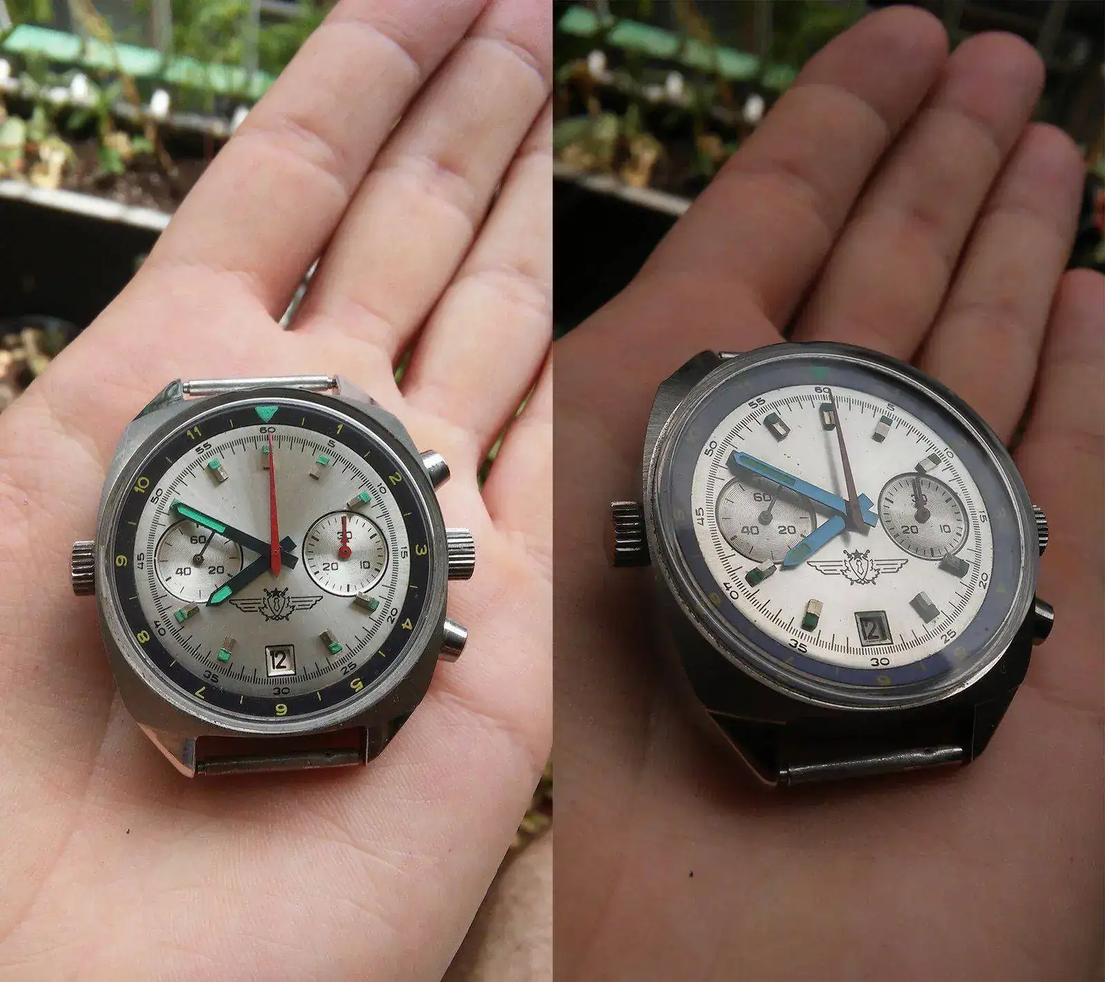 De primer plato tenemos un Raketa "doce rojo" con un brazalete de la epoca, marca Bulova (curiosa combinacion de reloj ruso y brazalete yanqui)