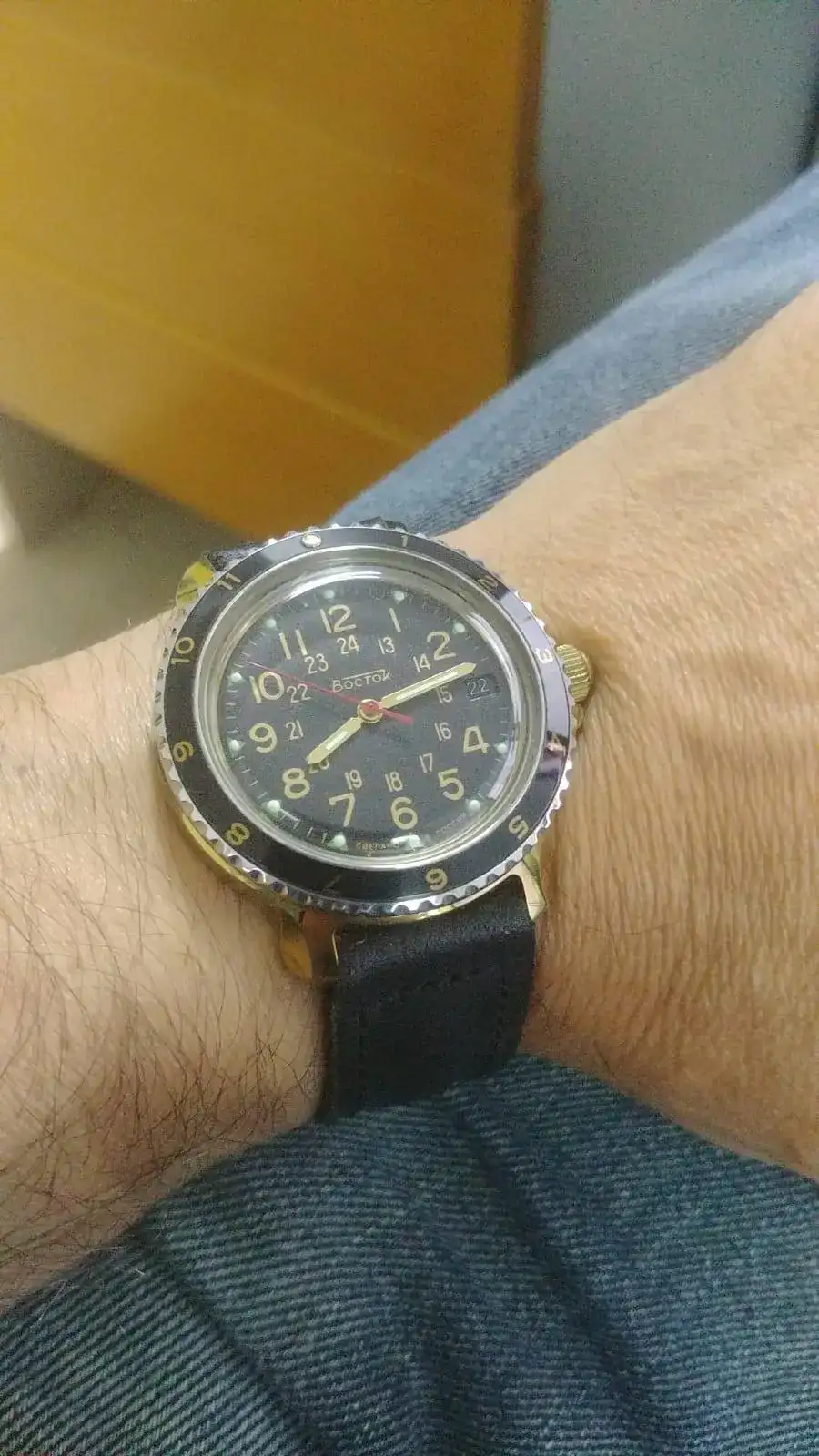 Creo que he hallado la correa ideal para este "abuelete" ruso, cuando lleguen los "frios" la cambiare por alguna de cuero, gordita, pero al tiempo, de momento se queda asi.