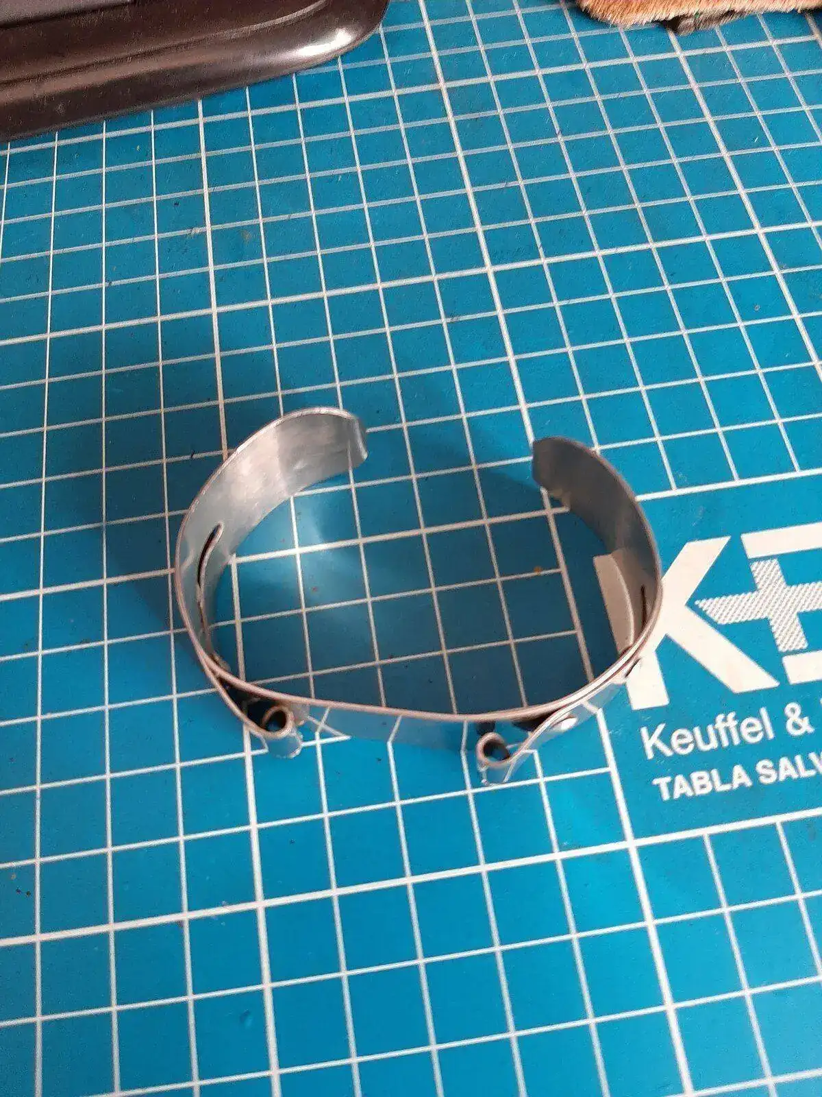 Ostias! Lo has hecho tú? De joven fui aprendiz en unos talleres donde me hice algunos brazaletes parecidos.Buen dia colega, hoy estrenando un brazalete muy "sui generis"