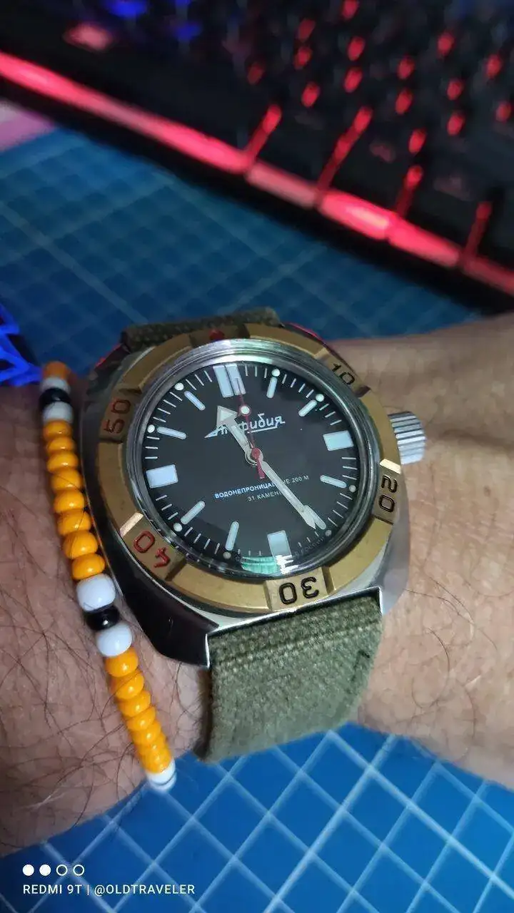 Gracias amigo, fue tu reloj, el que me dio la idea, de hacerme un ruso con bisel de laton, quizas me pida una correa de cuero gordita, similar a la tuya, pero ya vere, como bien has visto, la originalidad es lo mio.Te quedó bien chula esa combinación![]()