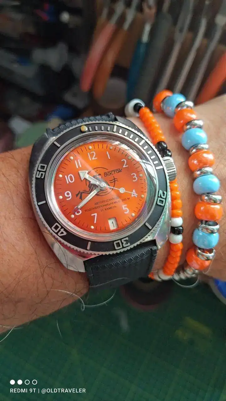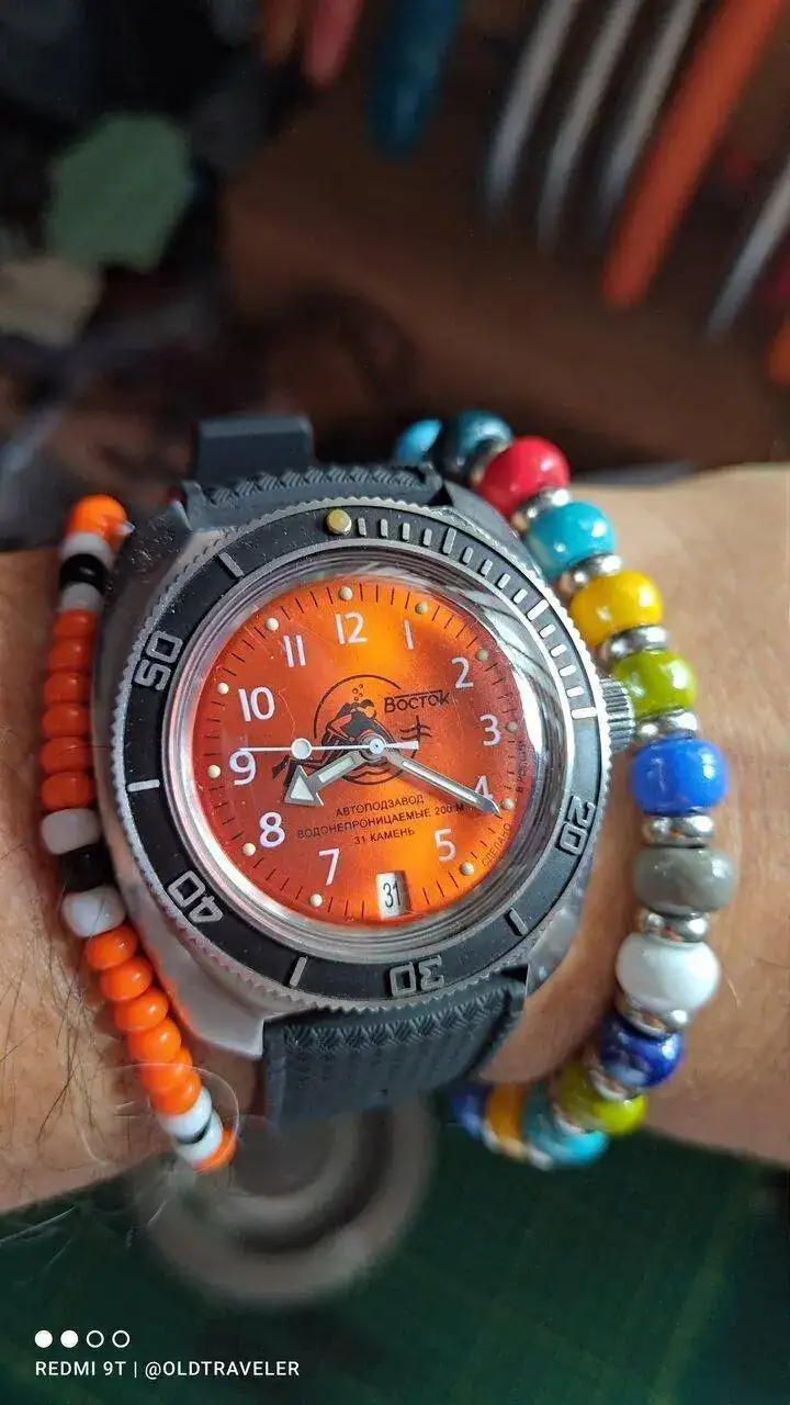 Si, hoy le toco a este grandote con la caja 090, con la gracia de un camion blindado, pero asentado solidamente en la muñeca, para mi es la caja "rusa" por excelencia.Muy bien, hoy naranjito en el banquillo. 😉👍