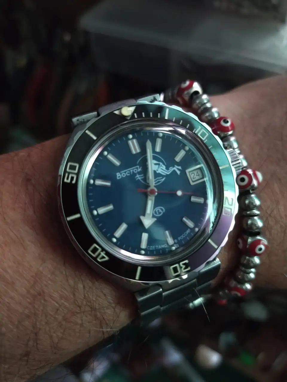 Gracias amigo, me hace mucha ilusion tener este par, es uno de los modelos del catalogo de la marca que me chiflan, el dial del buzo para mi es el clasico de la relojeria rusa, me fue relativamente sencillo conseguir el "abuelete" en la bahia, una vez que arribo a mi ciudad, paso por las manos de mi relojero que lo reviso y me confirmo lo que decia el vendedor, que habia sido revisado y limpiado y marchaba bien.Quien a su abuelo se parece honra merece. 😉