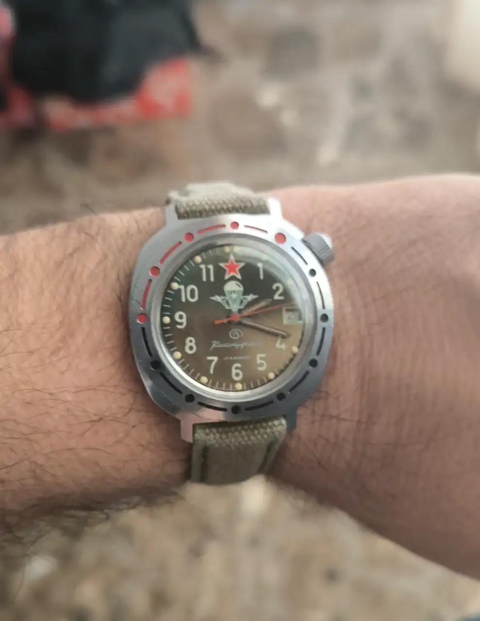 Esa caja me gusta bastante cuando es de acero, o cuando el latón está perfectamente a la vista. Buena piezaBuenos dias hoy otro reloj de la CCCP, reloj de paracaidista con corona a las dos. Original comprado en la Urss cunado hubo el golpe de estado.
