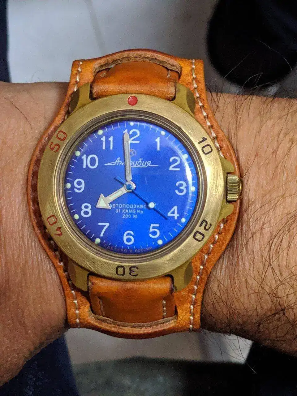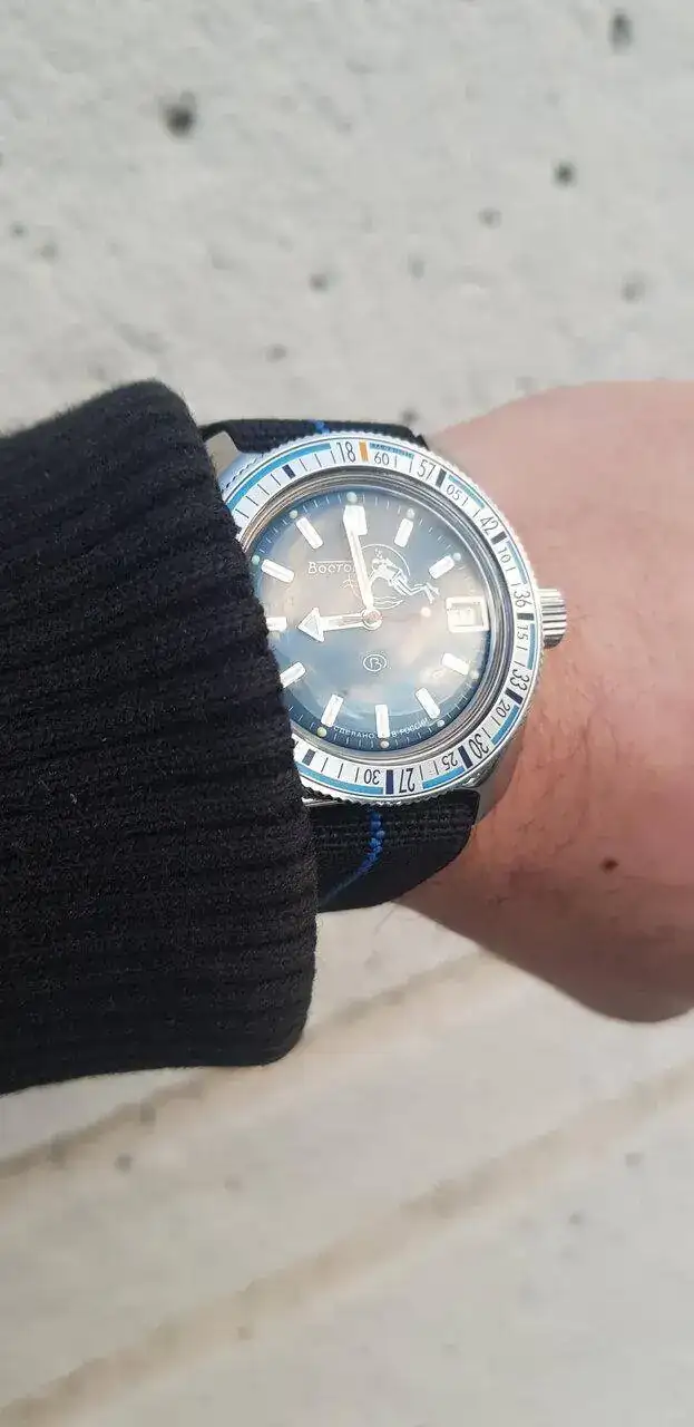Gracias, al llevar números arábigos me pareció un buen dial para un Komndirskie, sale un field watch.Que bien se ve ese contraste de dial Amphibia en caja komandirskie