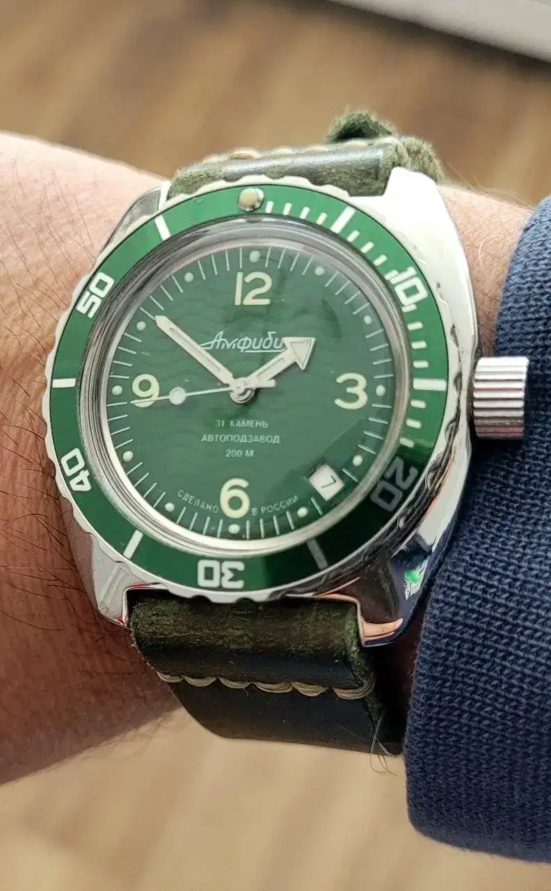 Que bonita "iguana" (asi les digo yo a los relojes verdes), una caja que me falta en mi "rejunte" de rusos.