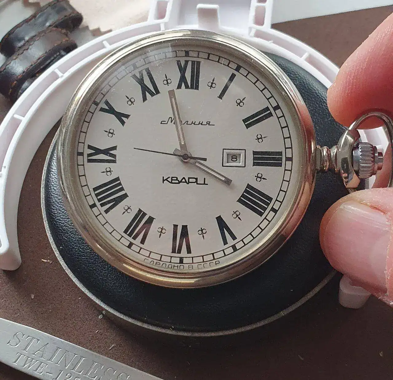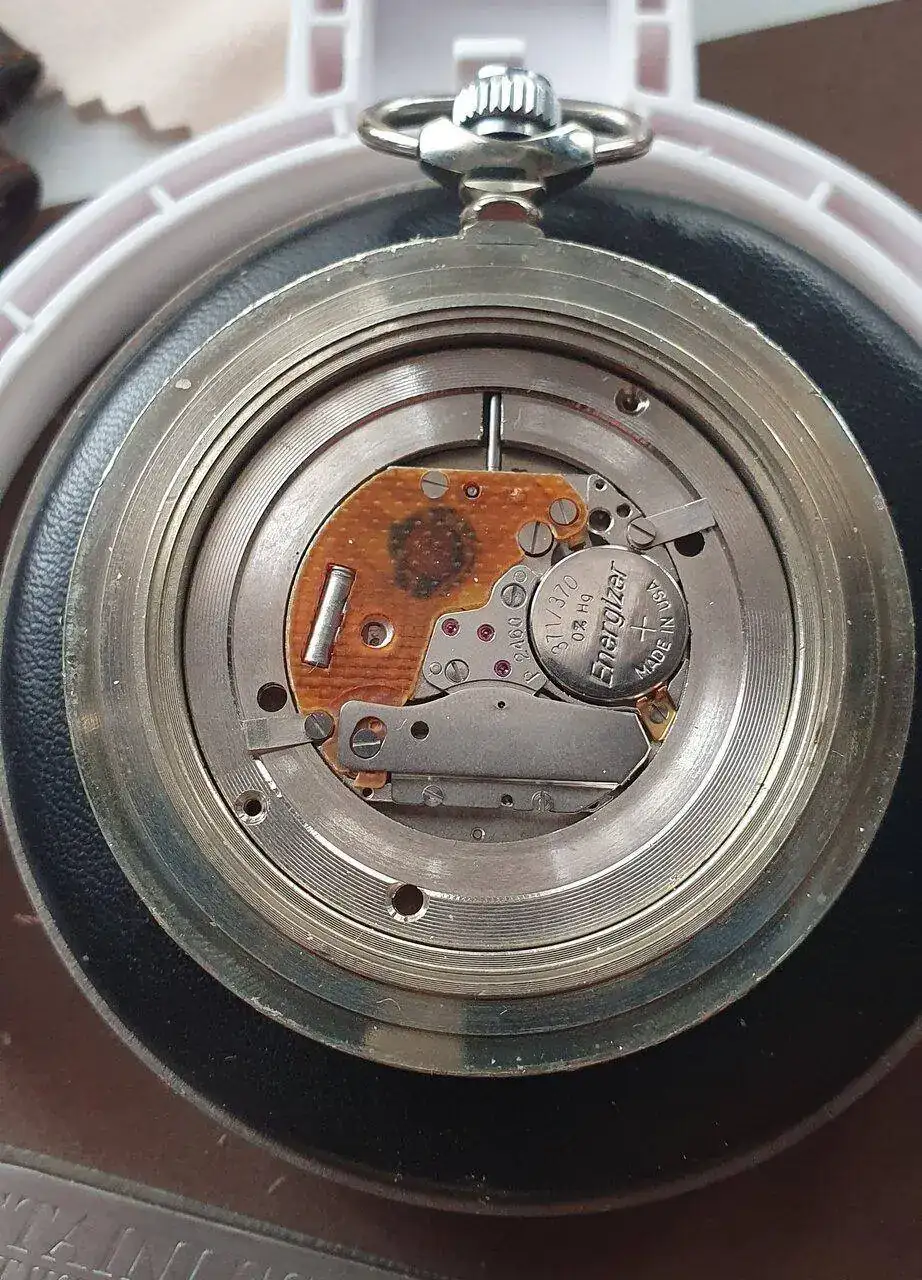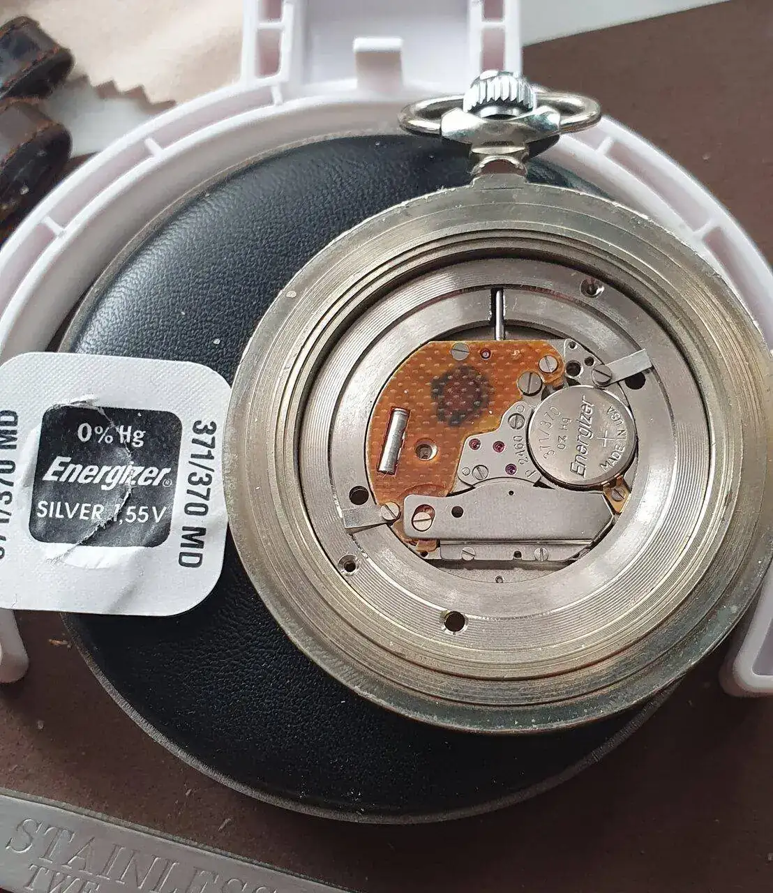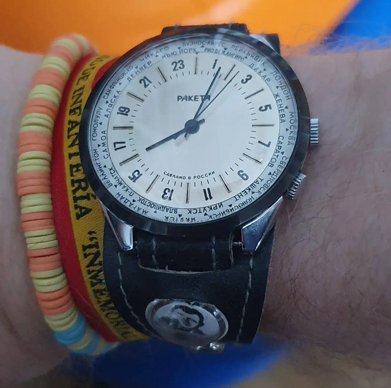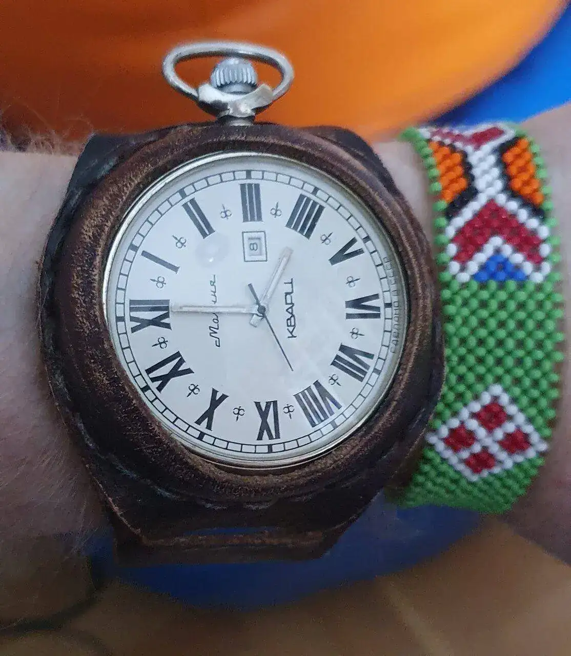 Y lo he puesto a una correa que tengo para relojes de bolsillo. Va girado, pero bueno, así lo veo. El movimiento poljot 2460 vuelve a latir. Me quedo la pila rusa como recuerdo. Os pongo foto 🤗 espero que os gusten.