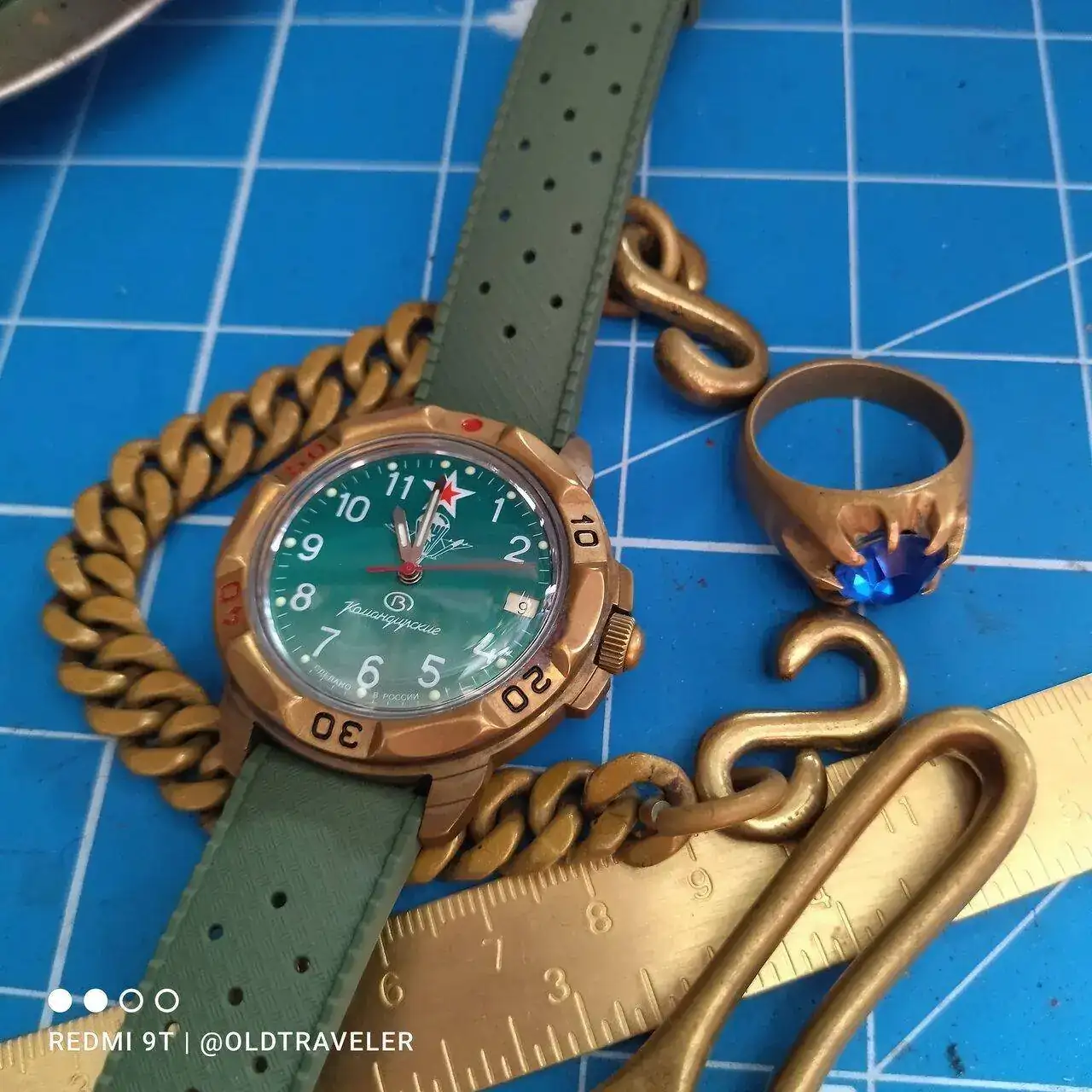 Tengo especial debilidad por accesorios de laton y bronce, tengo brazaletes, llaveros, incluso reglas y escuadras, anillos, leontinas etc, un intento bastante "chafa" (cutre) de hacer una composicion, pero visto lo visto, para hacer fotos, soy mas simple que el mecanismo de unas maracas.