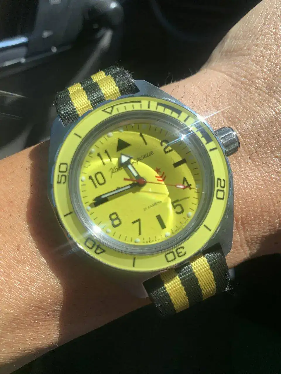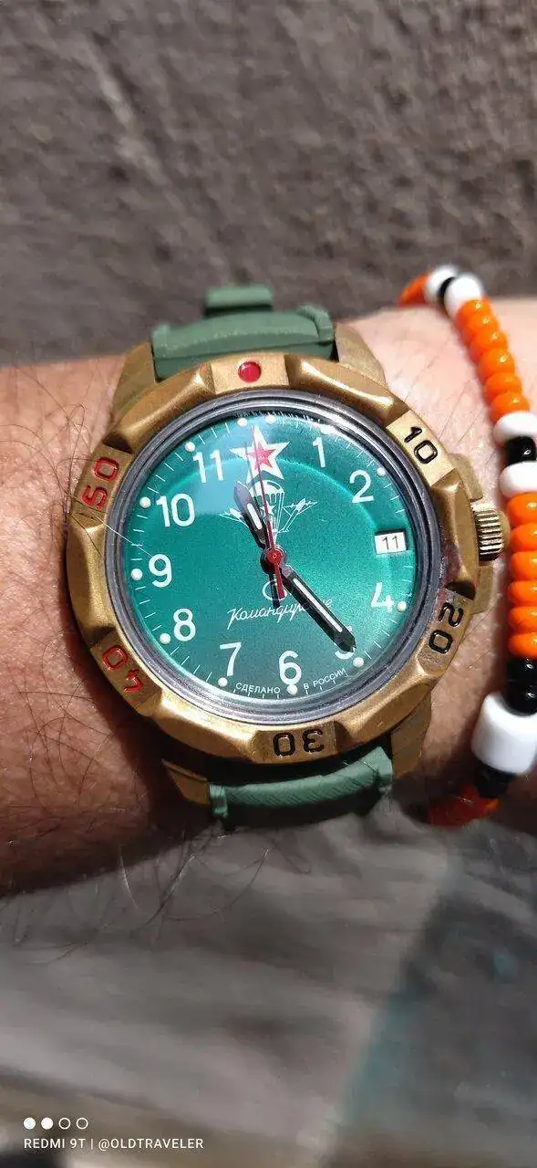 Gracias amigo, este Komandirskie fue comprado expresamente para pasar por la tina de acido, pues me atraia la idea de la combinacion del verde con el laton y fue un acierto total, este ruso, ha ido a la playa y alberca sin incidencias y con esta tropic verde, es una delicia portarlo.Saludos Old. Ese latón con el verde de la correa, y el contraste entre colores y materiales, hacen un conjunto bien chulo. Me gusta mucho ese reloj. Espero que el calorón haya pasado un poco y que la comida y las cervezas hayan sentado bien![]()