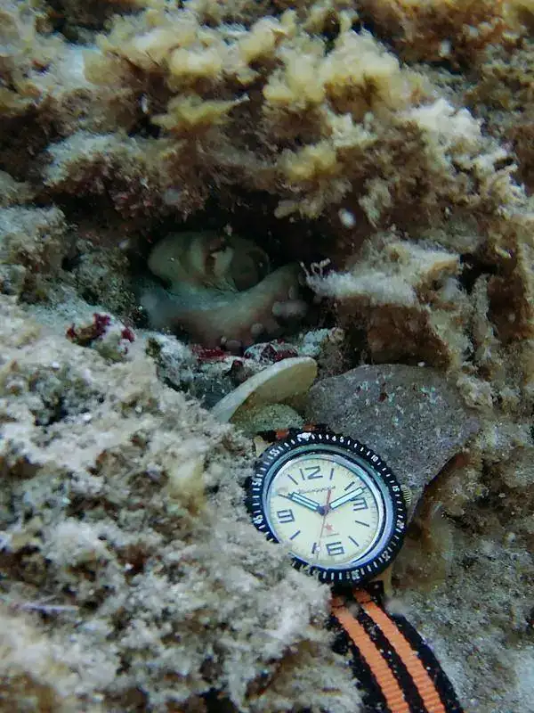 al bajar me he dado cuenta de que el pulpo se lo había llevado a su cueva, solo sobresalían 2 cm. de correa... he tirado suavemente, pero suavemente no conseguía nada así que con cuidado de no lastimar al animalito pero con firmeza he conseguido recuperar el komandirskie!! tendría que haberle sacado una foto con la evidencia del hurto, pero he temido que si se asustaba y se escondía un poco mas ya no podría tirar de la correa!!Muy chulo el mod y la historia del pulpo es genial jajaja, cualquier cosa que puedan coger lo cojen, además y como decimos los coleccionistas, "quien fuera pulpo" para poder llevar un reloj en cada brazo!Hola a todos!! Pués hoy llevaba este: