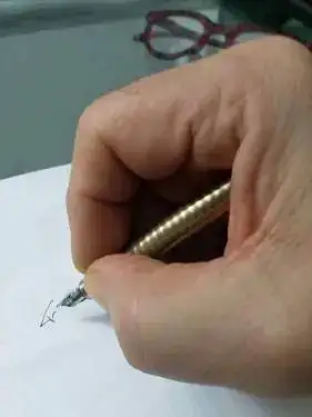 Eso sí hay que cogerla de una forma diferente. Quienes hicimos el examen de ingreso para el bachillerato tuvimos que usar los lápices hasta su extenuación, es decir hasta que se juntaban los dos extremos, y salvo que tuvieras un portalápices, la forma de usarlos era la que se adjunta. La parte superior en la palma de la mano en lugar de fuera de ella.