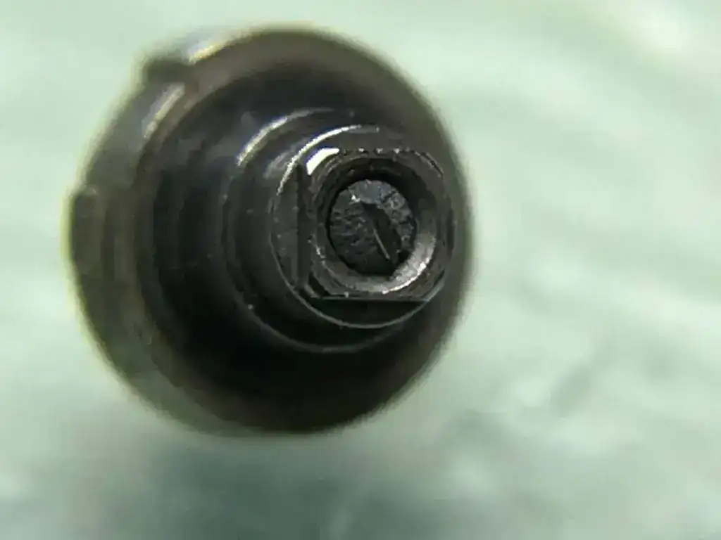 Cuando procedo al desmontaje observo que el tornillo de la rochete tiene la cabeza solo presentada, cuando intenté meterle el destornillador se desprendió permaneciendo dentro del árbol el resto del tornillo. (si yo lo hubiese roto lo reconocería, de verdad