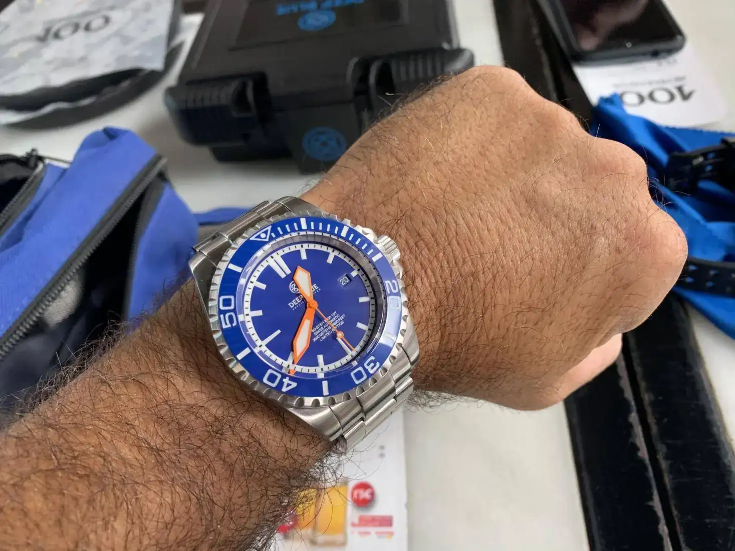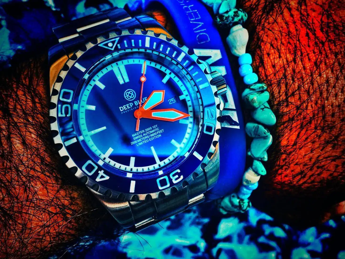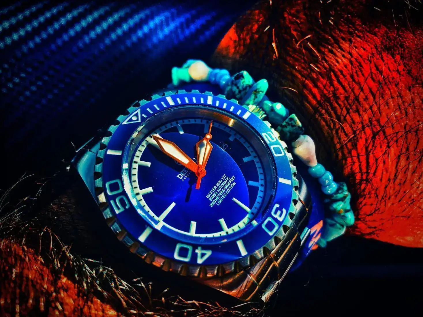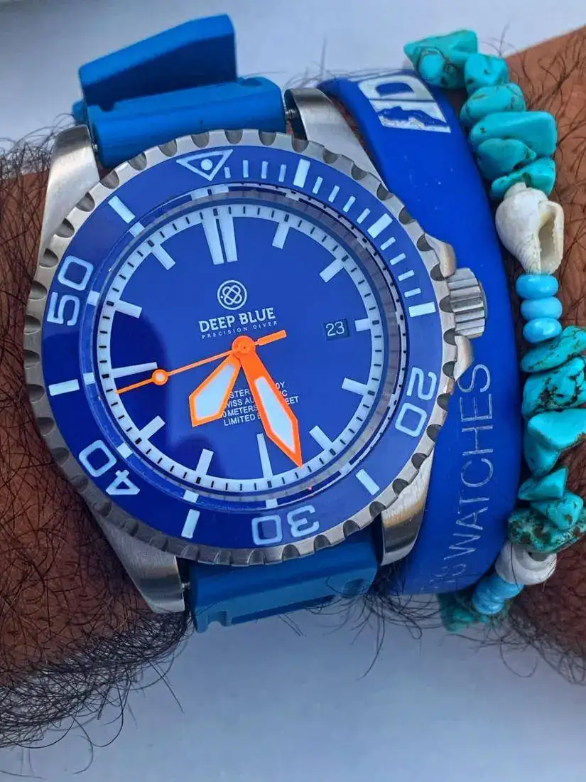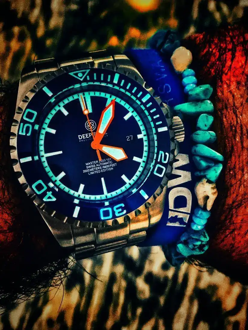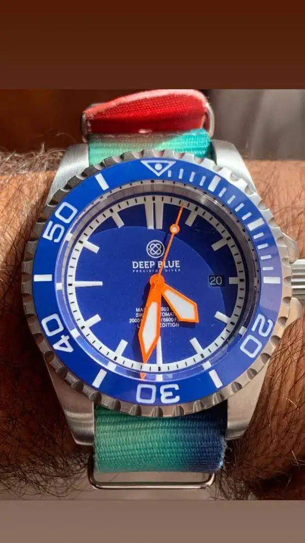 reloj muy alegre y llamativo. Por sus colores y tamaño, un 2000mt. Con zafiro, bisel cerámico azul. Antimagnético 70.000 gauss y tritium. Caja Alemana Kemmner. Y eta 2824-2. Una pieza interesante
