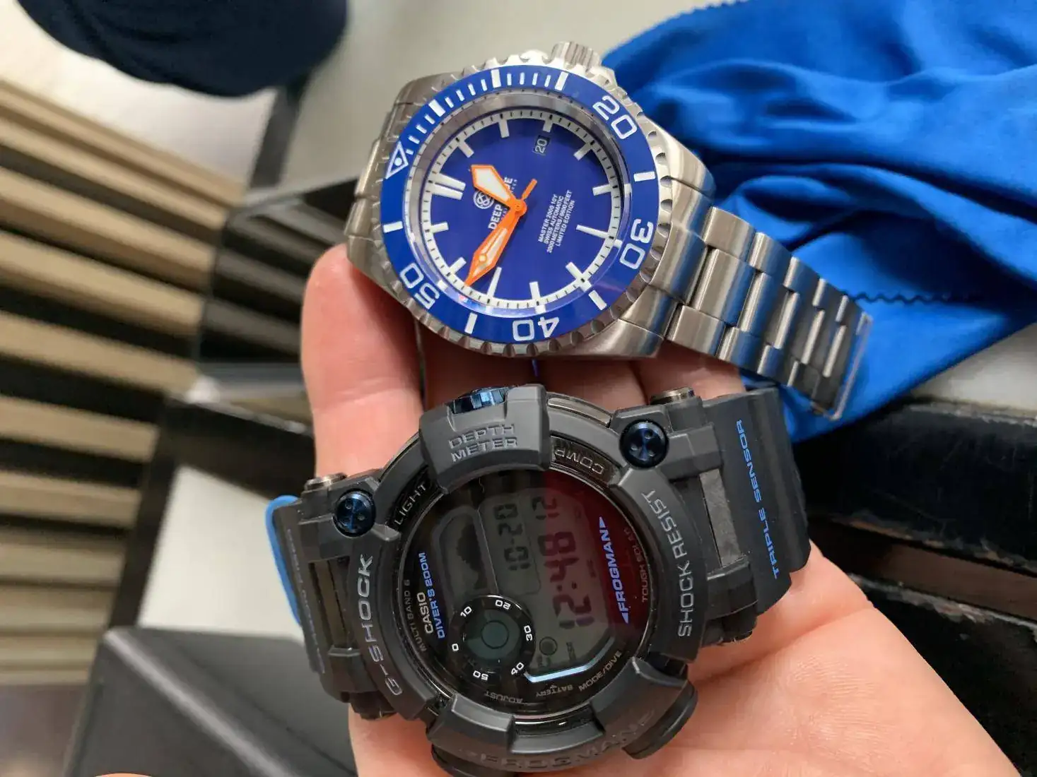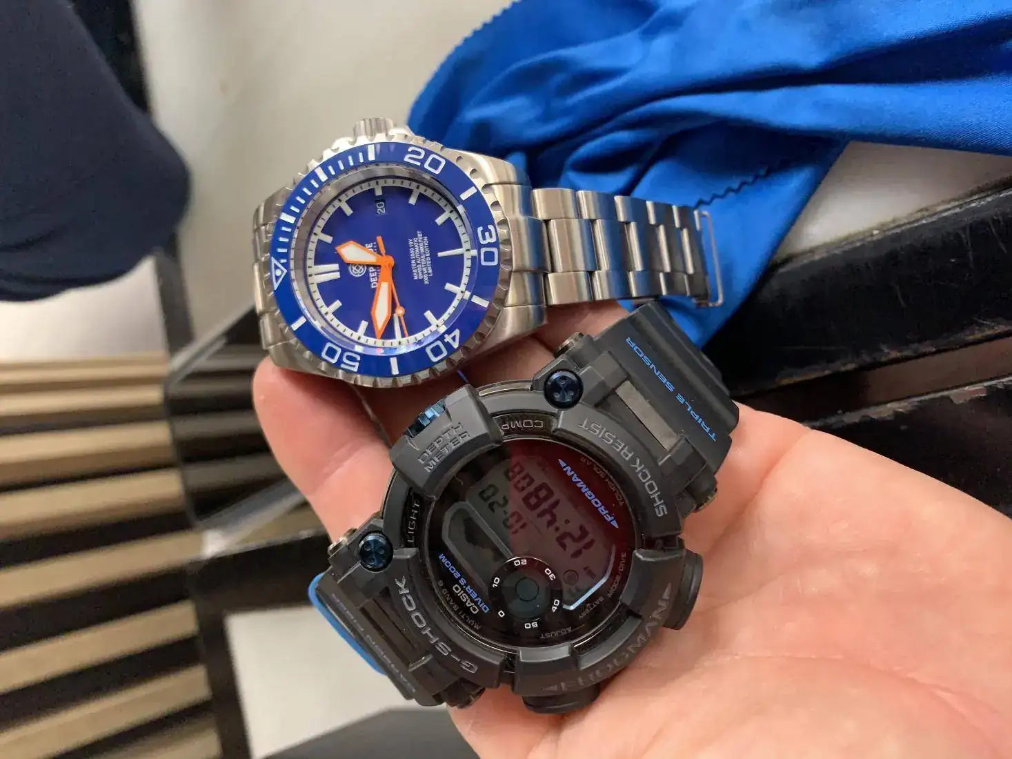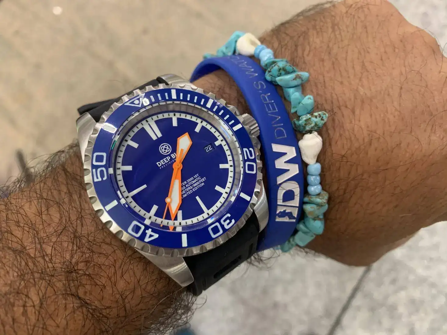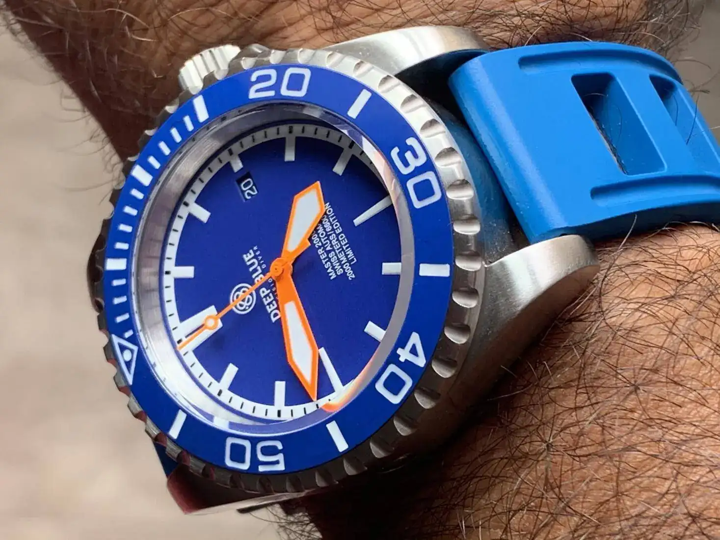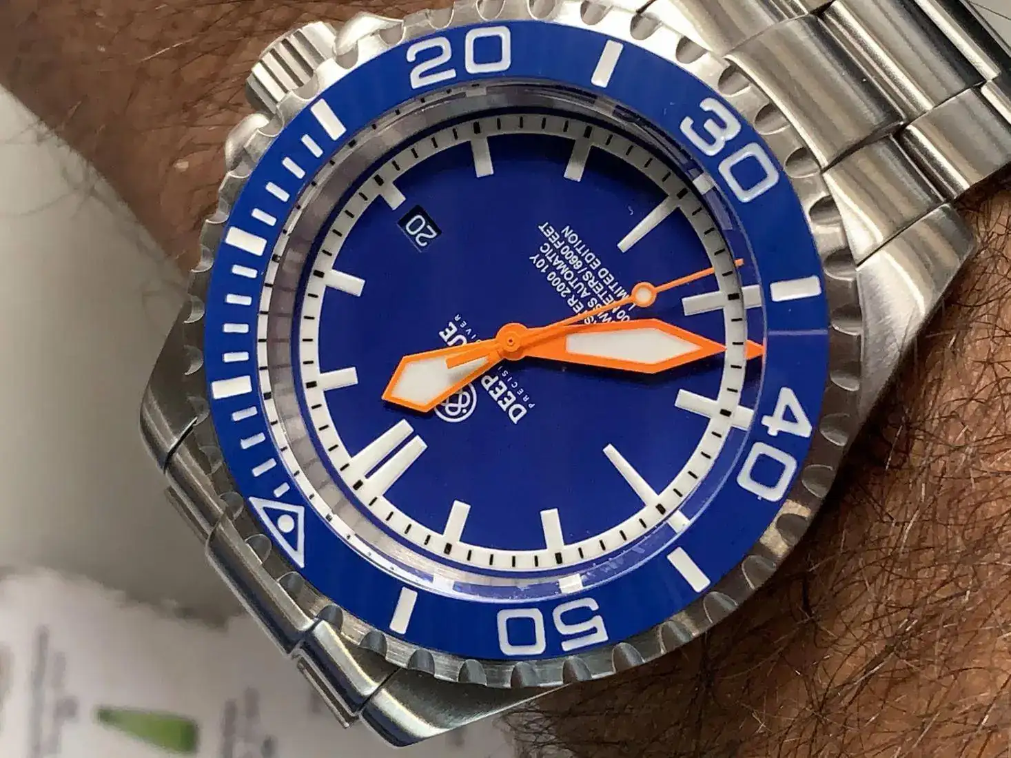 reloj muy alegre y llamativo. Por sus colores y tamaño, un 2000mt. Con zafiro, bisel cerámico azul. Antimagnético 70.000 gauss y tritium. Caja Alemana Kemmner. Y eta 2824-2. Una pieza interesante