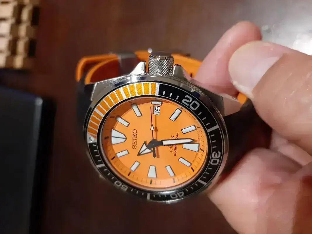 Muy lindo ese samurai. La crafter Blue le queda muy bien y eventualente cuando te canses del caucho,el brazalete le queda muy lindo también. En su momento estuve a punto de comprarlo.. después llegó el monster de primera generación y el skx011 y considere que eran suficientes relojes naranjas.