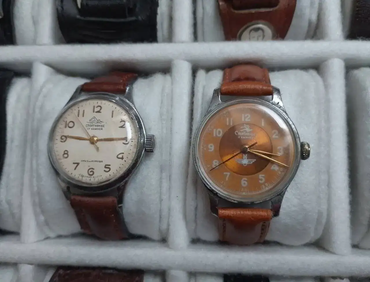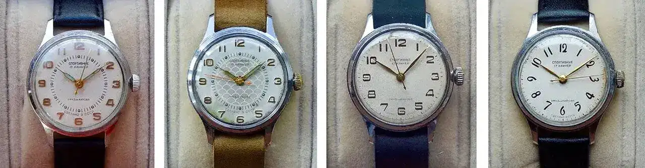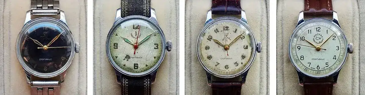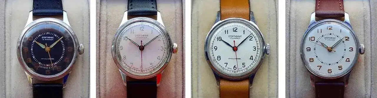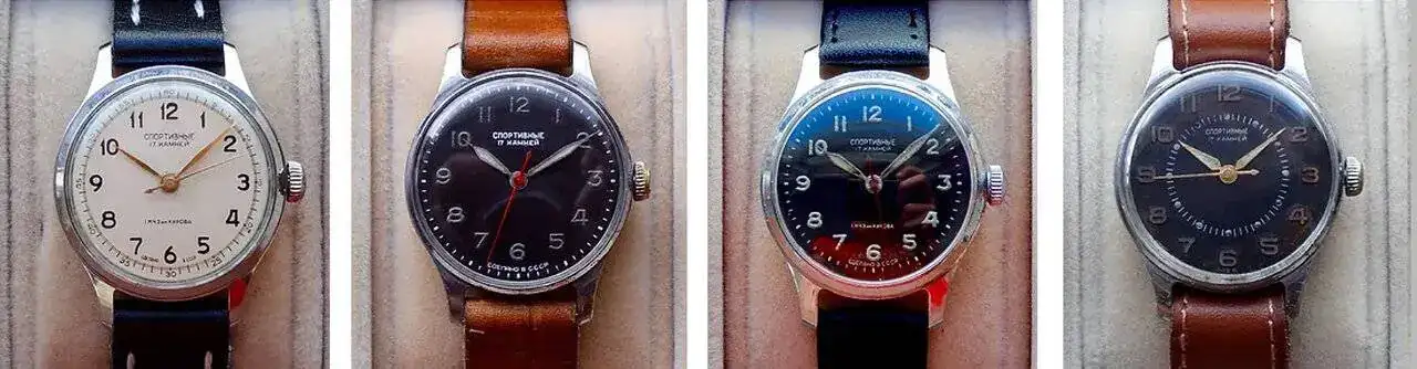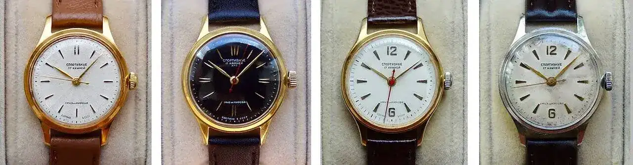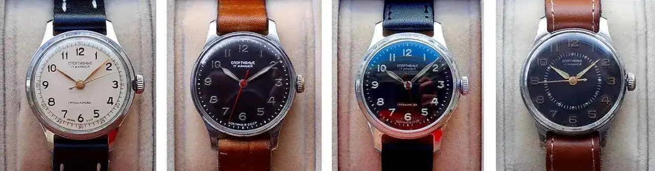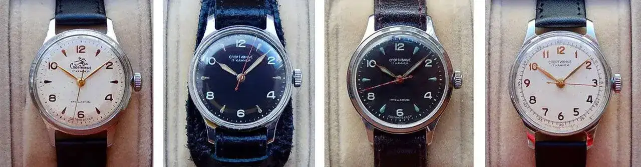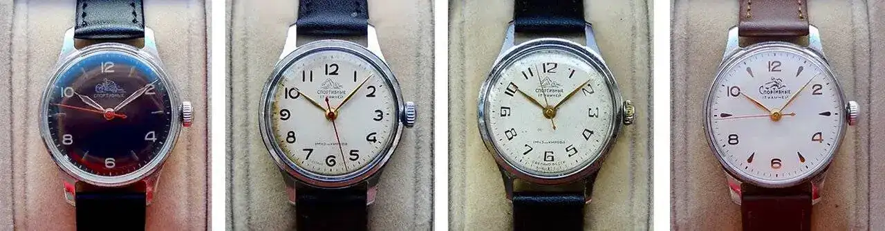 Recopilación de algunos de los Sportivnie fabricados. A parte de los conocidos modelos vallista y nadador, encontramos versiones adornadas con una paloma de la paz o logotipos de asociaciones juveniles representadas con una antorcha. Todo un sueño/pesadilla para aquellos compañeros coleccionistas con afán completista. (Fuente: https://mroatman.wixsite.com/watches-of-the-ussr/sportivnie)