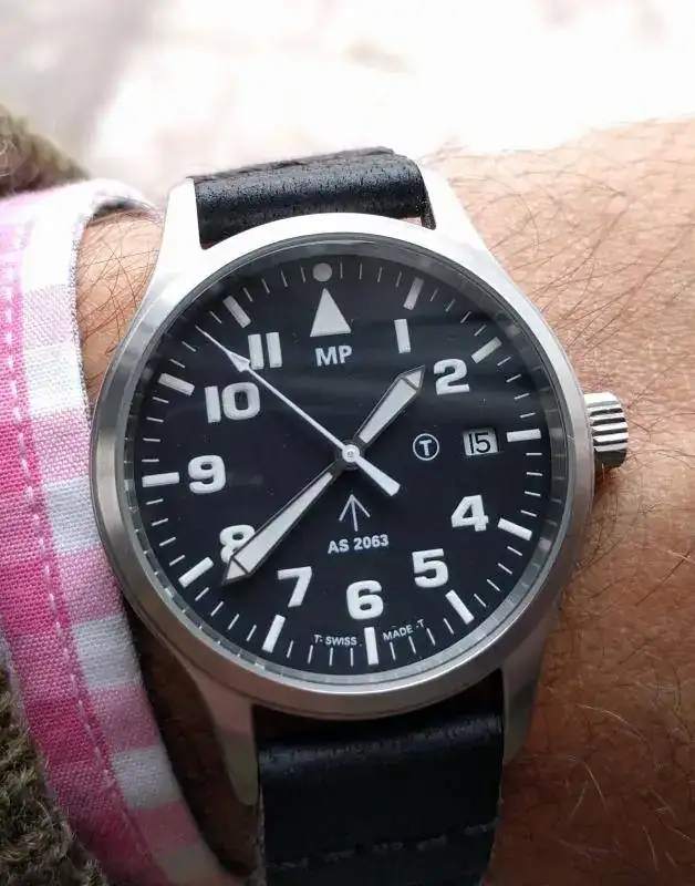 Es de los relojes de estilo militar que mas me gustan, con la flecha, el tritio..y sobre todo me atraia que llevara la maquinaria Adolph Schild 2063, en lugar de la Etasa.
