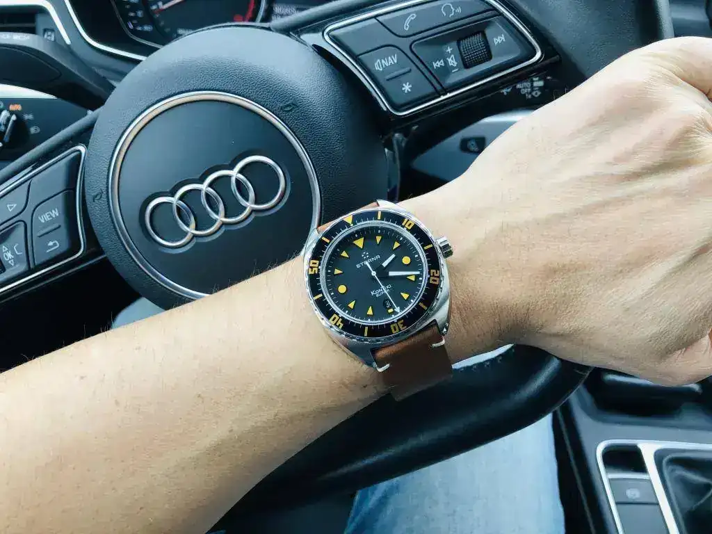 La verdad que una vez en mano el reloj me ha sorprendido muchisimo, tiene una calidad de acabados brutal. Y en la foto parece que me queda algo mas grande que en realidad, para lo que quería el reloj, que era para ocupar un hueco en mi caja como reloj polivalente pero sobre todo para "vestir" (ya se que hay relojes mas específicos para eso) me viene perfecto