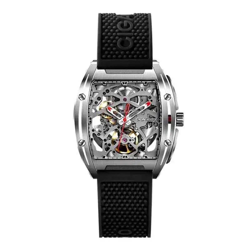 La caja se ve bien, no parece una caja de mala calidad con los logos bien visibles de la marca (CIGA DESIGN que es la marca de relojes de XIAOMI) grabados por laser en el lateral y en la esfera.
