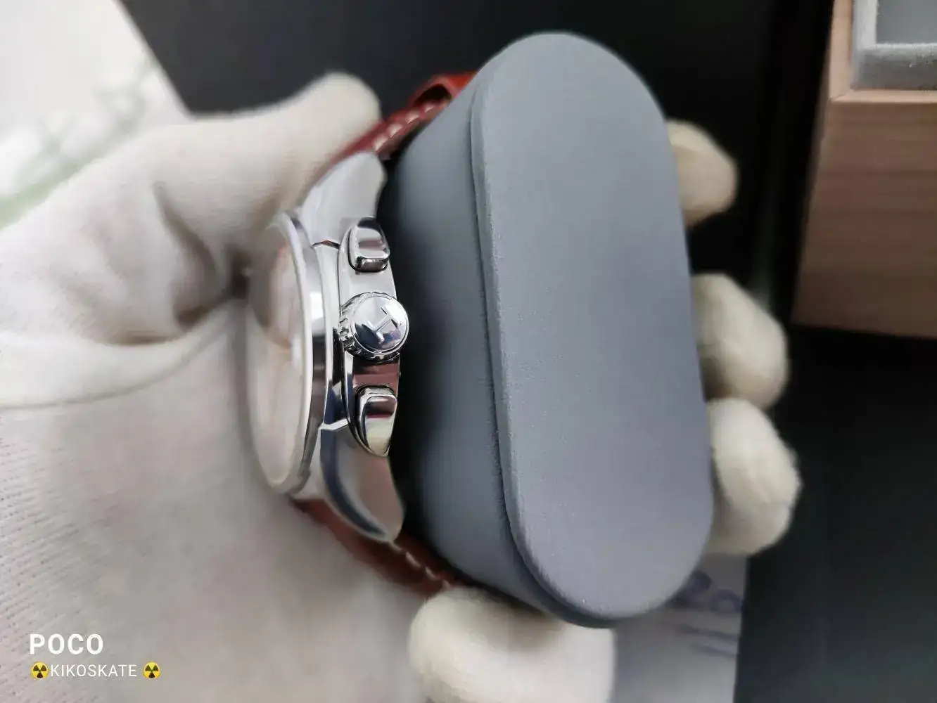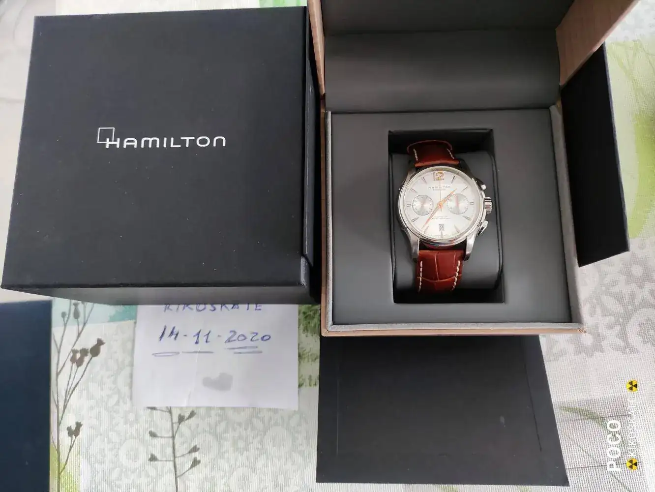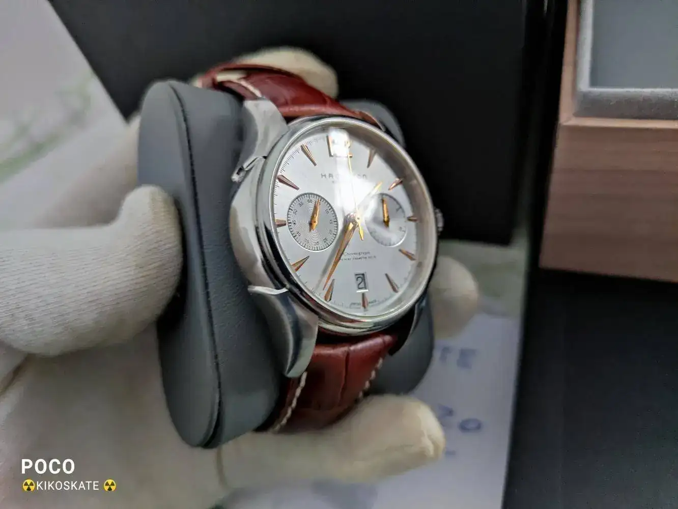 Lo primero que voy a decir es que se encuentra en un estado magnífico,ahora lo veréis en las fotos,viene con caja Hamilton de madera como es lógico en un reloj de PvP de 1500€ aproximadamente.
