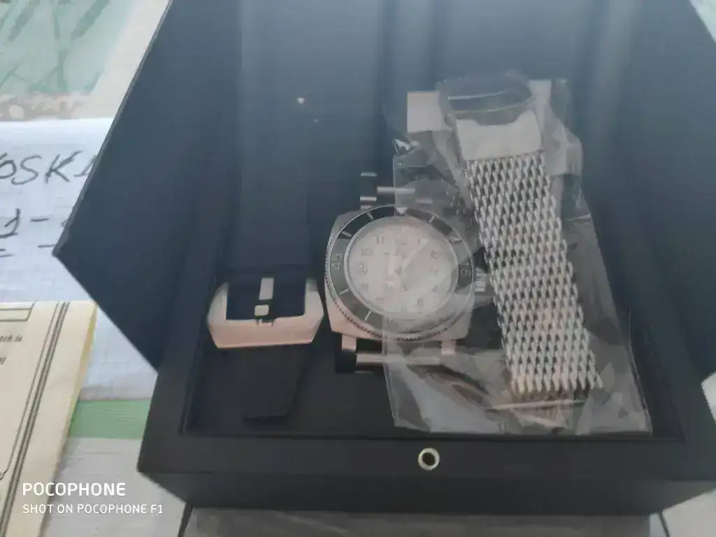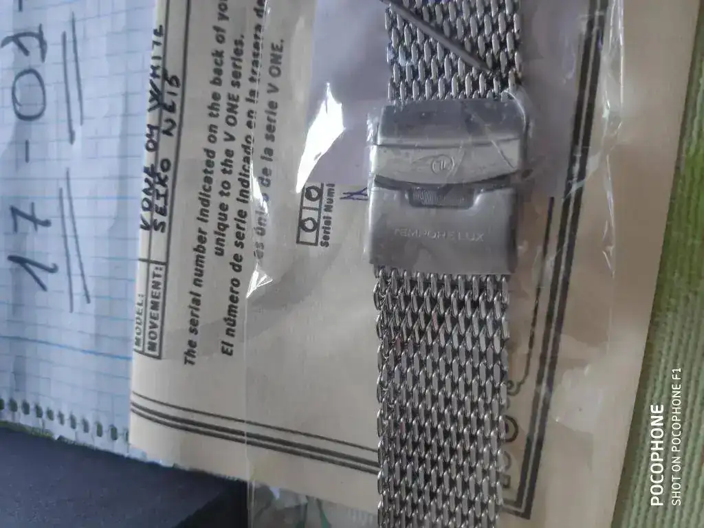El reloj y todos los accesorios estan Totalmente nuevos sin ningun uso,especificar que este reloj costaba en su momento 379€ y que tanto la milanesa original firmada era opcional +75€,como el armis aftermarket mazizo 35€ aportan un valor añadido y redondean un impresionante conjunto de dotacion excelente.