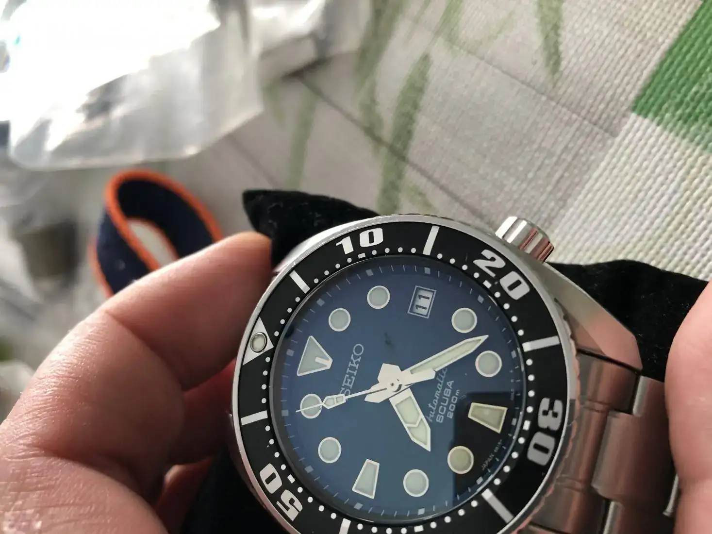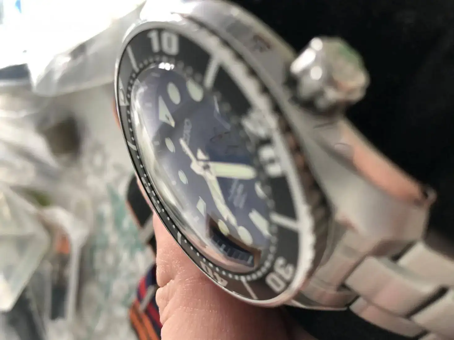 El reloj tiene zafiro abombado con AR,totalmente impoluto,instalado en el sat seiko con hermetismo realizado.