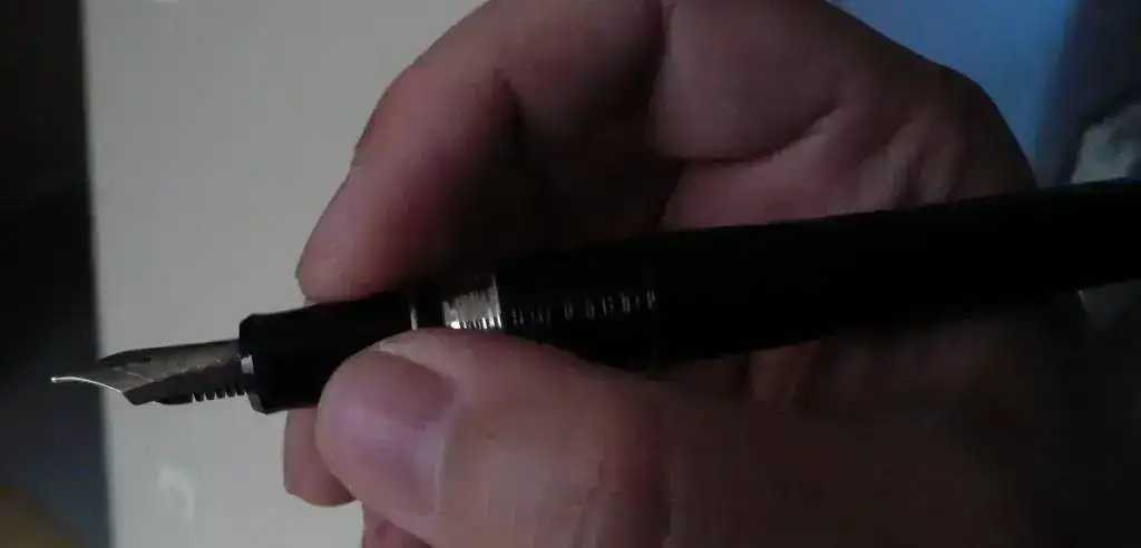 Los plumines de ambas son sensacionales. Los plumines F modernos de Pilot me resultan un poco escasos de flujo, quizás porque ahora tiende a utilizarse un papel más barato y poroso, y en esas circunstancias tienden a ramificar menos cuanto más finas y secas son. Estos dos plumines, ambos de punto Fino, son jugosos, y mucho más parecidos a un EF europeo. Tienen un flujo suficiente como para aceptar tintas densas como la Platinum Carbon Ink sin problemas, más allá de la mancha petrolífera que dejan en el plumín.