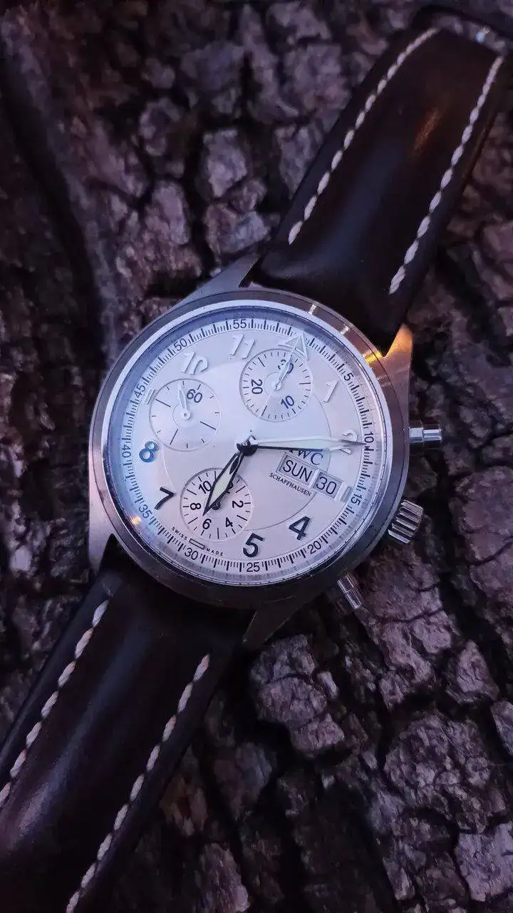Preciosa fotografÃa del IWC sobre cortezs de pino. Crono fantásticoFeliz lunes foro.