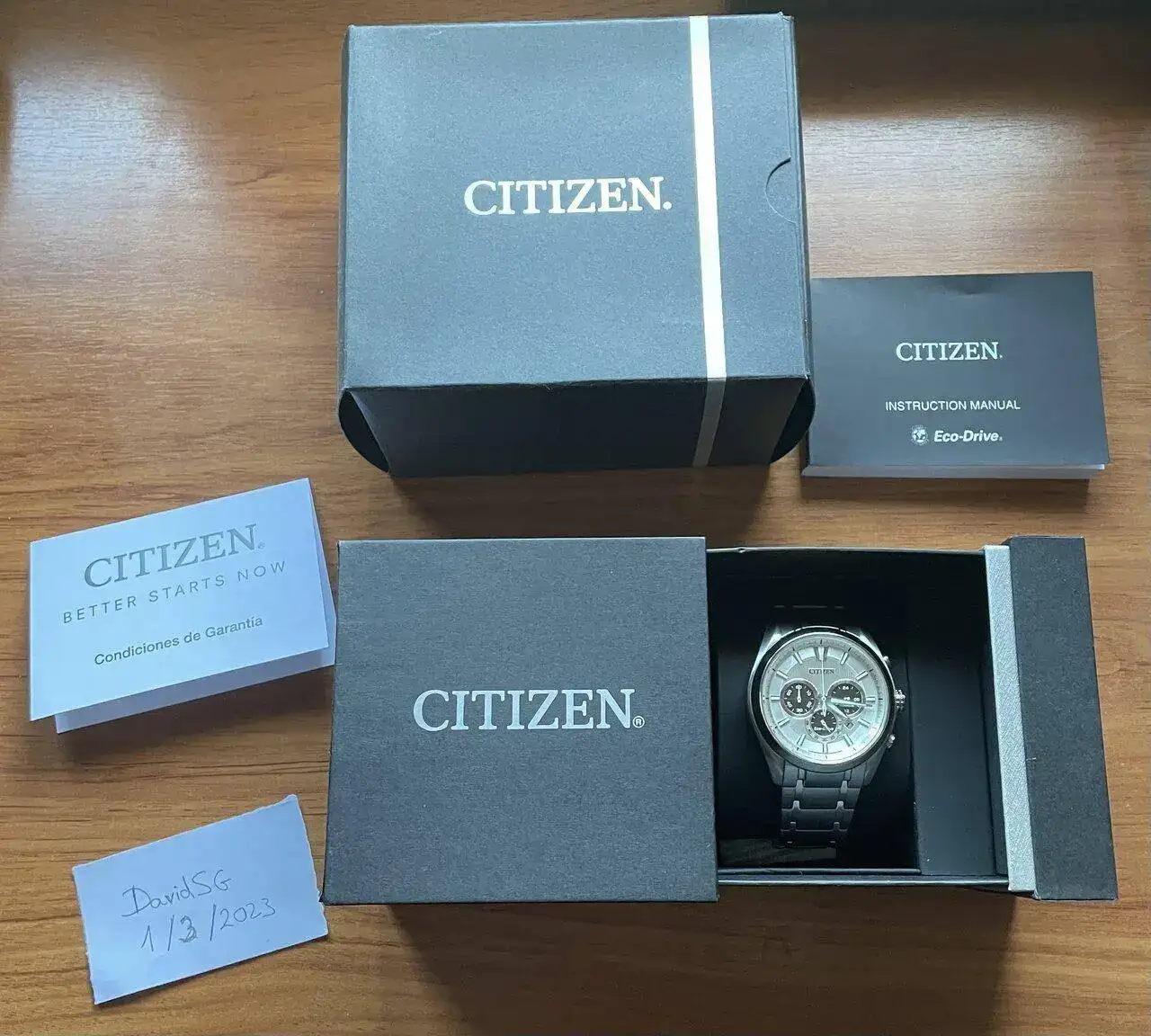 Pongo a la venta éste Citizen Eco-Drive Super Titanium Chrono con esfera plateada en excelente estado, con muy poco uso (apenas usado una decena de veces).