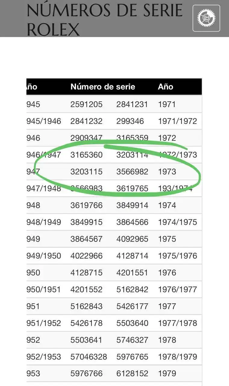 Como bien dices, el número de serie es el que data el reloj.32035XX (1973)