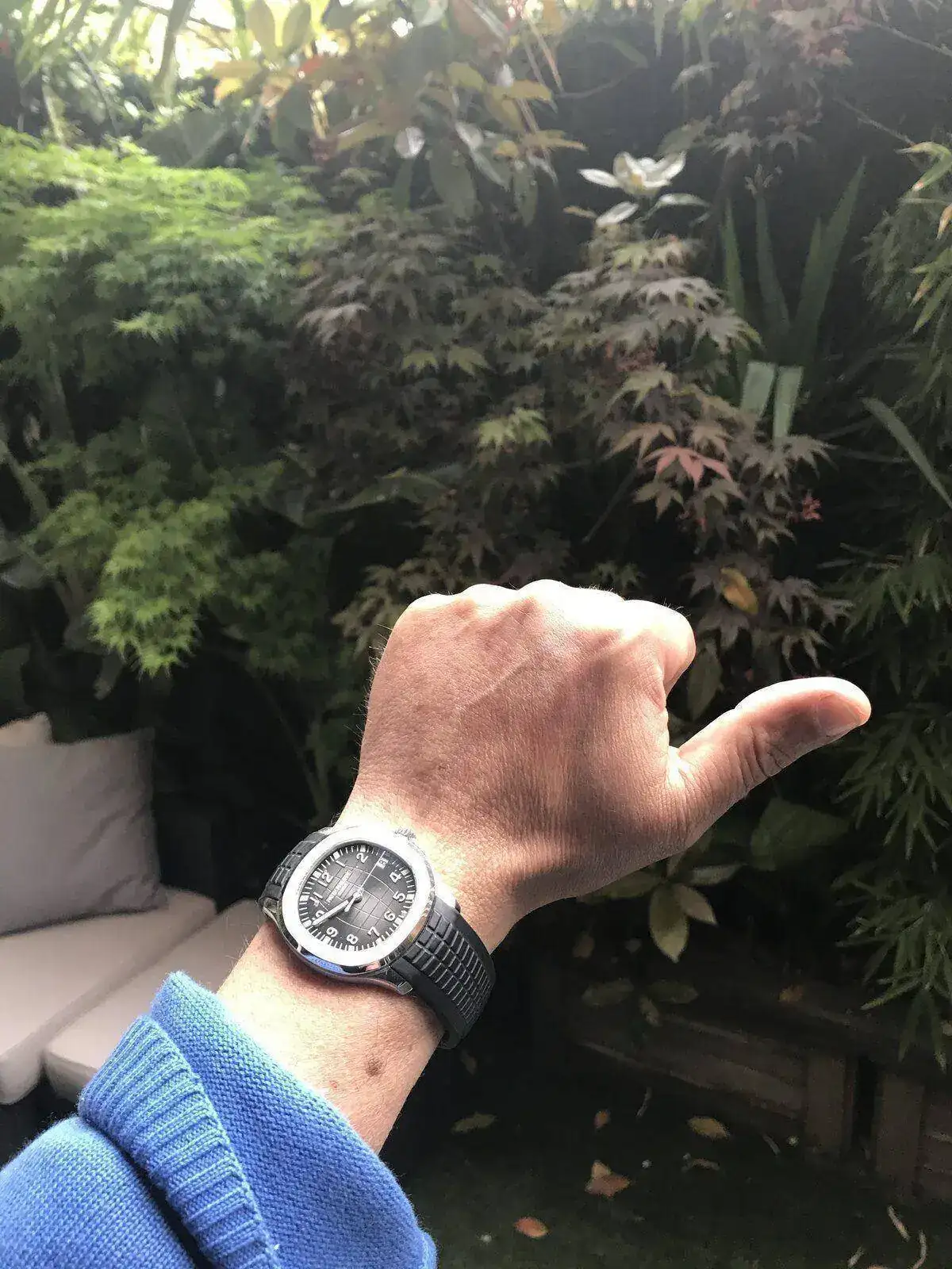 Y la foto está súper chula, pero me encantaría poder disfrutar mejor de la esfera de ese Majetek, aunque fuera en otro momento, plis plis 🙏 No se ven muchos, y menos de Lemania...No sé qué me da más envidia (por supuesto, insana y miserable): sí el Patek o ese bosquecillo de arces palmatum 😊