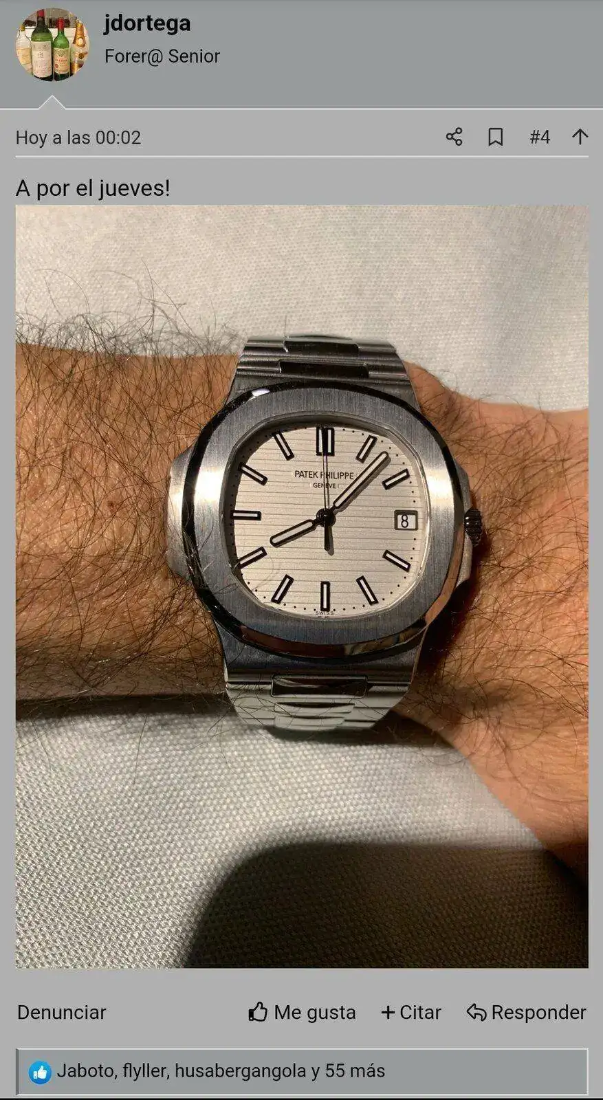 Y hoy se ha cumplido completamente el hechizo de mi mujer de 5 de 5 relojes que se apropió míos y que al postearlo han sido los más votados en el hilo diario. Increíble e impensable! No vuelvo a toser en casa... El foro me ha puesto en mi lugar familiar correcto en segundo plano. Es lo que hay.