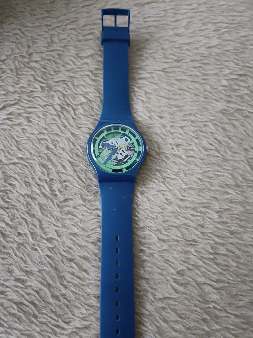 - Un Swatch en el que es complicado saber la hora exacta. Fue un regalo y se ha convertido en el reloj de vacaciones porque da igual salir de la piscina 5 minutos antes que después. Vive en Denia, ni tan mal.