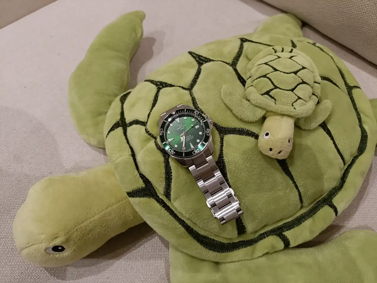 - Certina DS Action Diver de 38mm. Sí, me gustan los divers y los relojes verdes. Creo que la compra fue la más meditada de todas. En casa lo llamamos "Tortuguita". La verdad es que lo disfruto mucho.