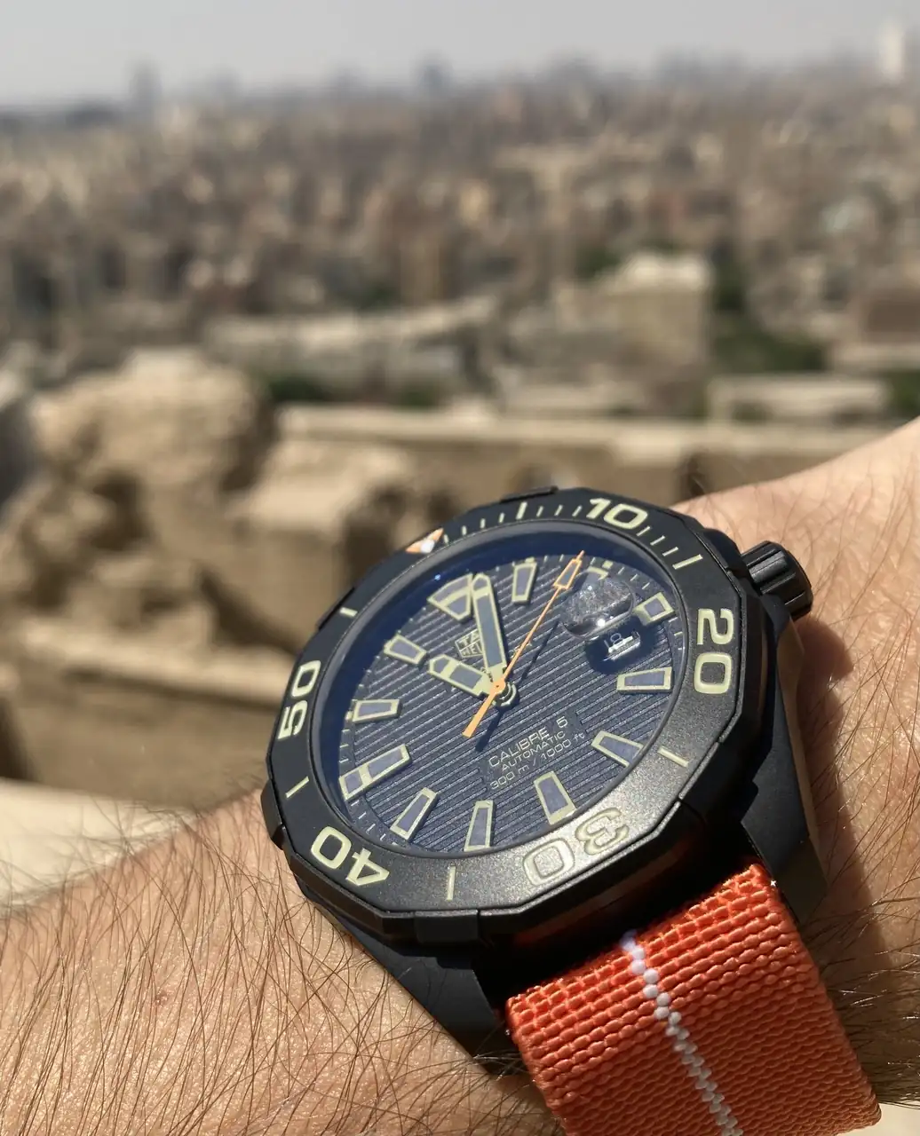 Durante años ha sido mi reloj todoterreno usado para absolutamente todo: clases en la universidad, trabajos, viajes, comidas, baños y fiestas. Con la llegada de otros relojes, en especial el tercero, chupa bastante banquillo. Ahora se limita a actividades subacuáticas en verano. En Galicia, al ser muy corto, eso se limita a dos meses al año, tres en el mejor de los casos. Lo he llevado con bastantes correas. Ahora lleva una Erika, creo que es la que mejor le queda y así estará hasta que me aburra. Una última foto desde la ciudadela de Saladino, en El Cairo, antes de pasar al siguiente.