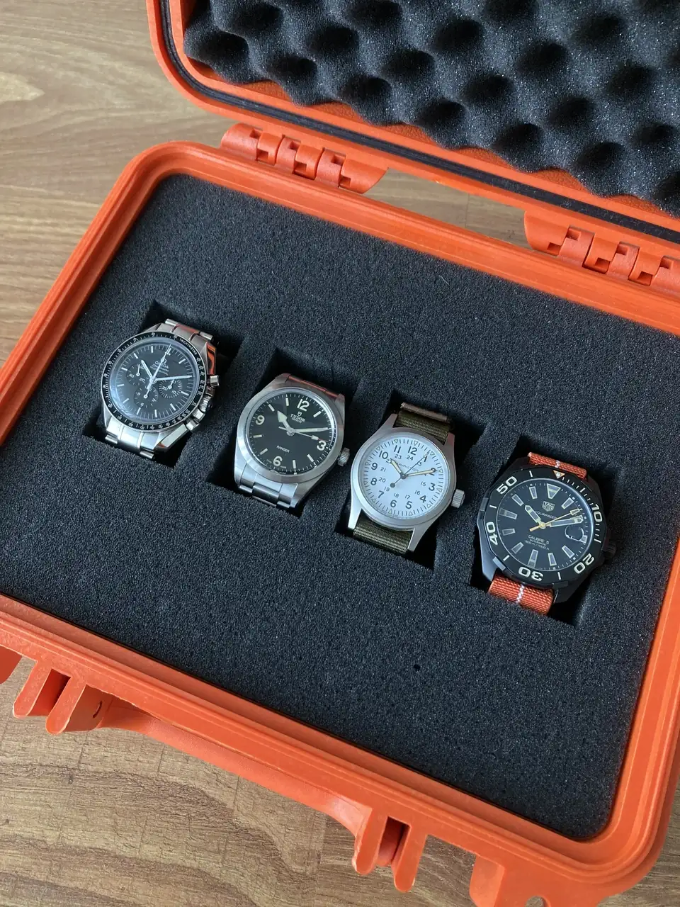 Será una presentación breve y humilde. Mi caja se limita a cuatro relojes + dos que duermen fuera. Nos centraremos en los primeros.