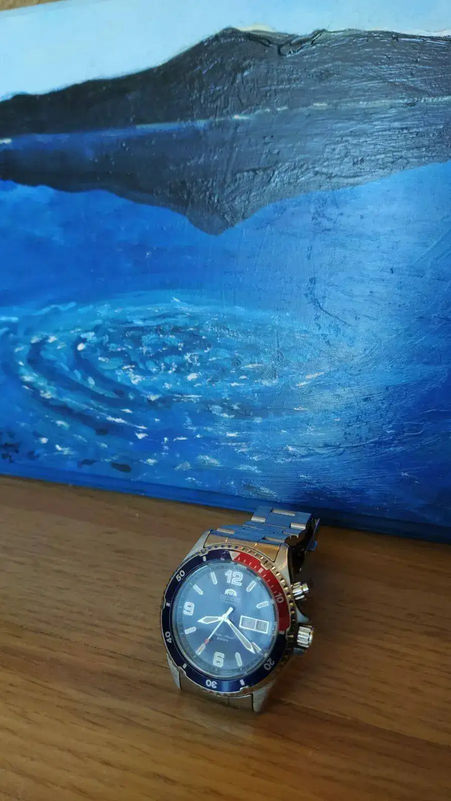 Orient Mako I Pepsi, mi primer automático comprado a los mercantes del foro. Imposible describir la emoción de recibir mí primer automático. Ver esa aguja moverse de seguido, volver a la vida con tan solo moverlo bufff como alucinaba. Si a eso le añadimos todo lo que ha vivido conmigo...Nos hemos bañado juntos en Italia, Francia, España, Irlanda…nos hemos presentado a unas cuantas entrevistas de trabajo, hemos vivido en el extranjero, muchas aventuras y recuerdos. Con tan solo ver las heridas de guerra que tiene os podéis imaginar que el reloj ha vivido conmigo bastante.