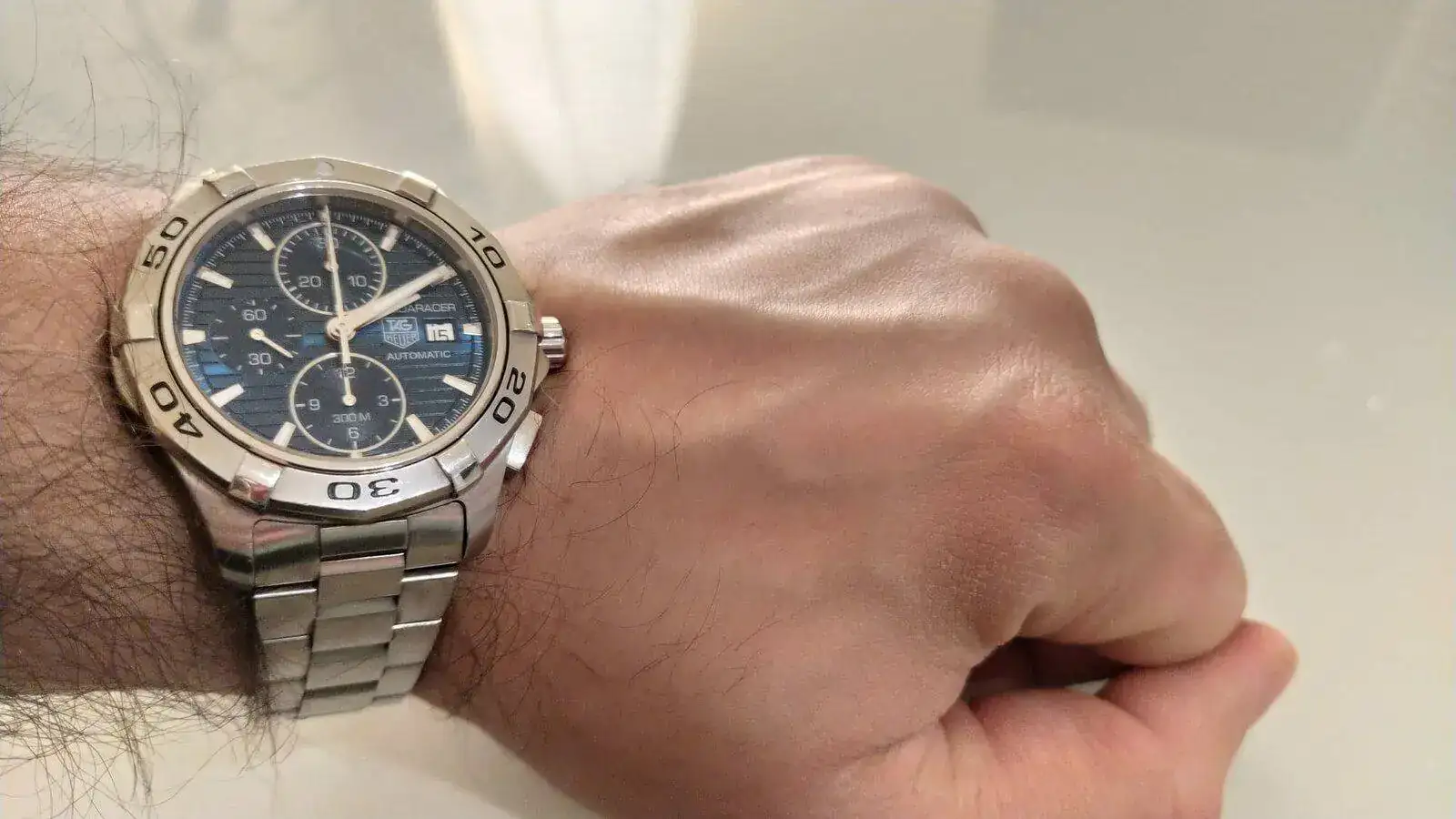 Tag Heuer Aquaracer calibre 16. Me había enmelonado con un crono automático, necesitaba uno y el carrera Brad Pitt siempre había hecho ojitos, peeero al final por casualidades de la vida se me cruzó el aquaracer, fue amor a primera vista y zasca, tras probarlo en ECI se lo compré a un fantástico forero en el FCV. Me encanta la 7750, el tractor me gusta llamar a mí, me encanta sentir ese pedazo de movimiento en la muñeca y creo que todo aficionado tiene que tener uno en la vida, los diver para el mar y los tractores para el campo venga tomates….![]()