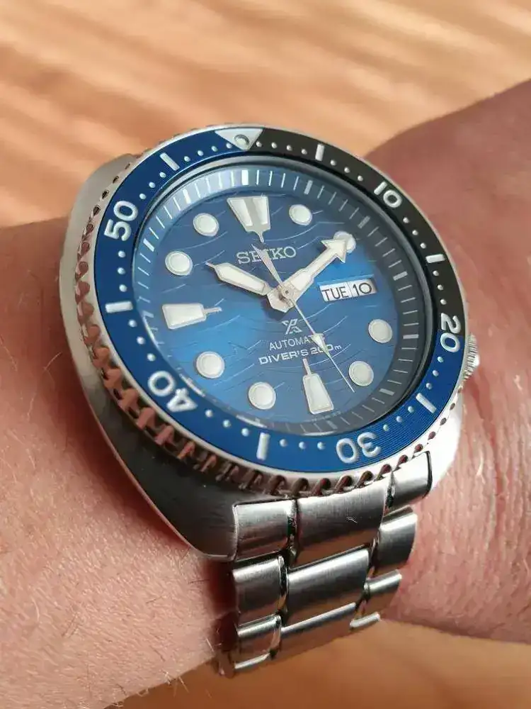Gracias [emoji4] Es el Great White Shark. Una de las ediciones del tortuga mas acertadas[emoji7][emoji7]Acabo de descubrir que entre el oleaje se ve una aleta de tiburón. Qué detalle más bonito! Es un reloj precioso.![]()