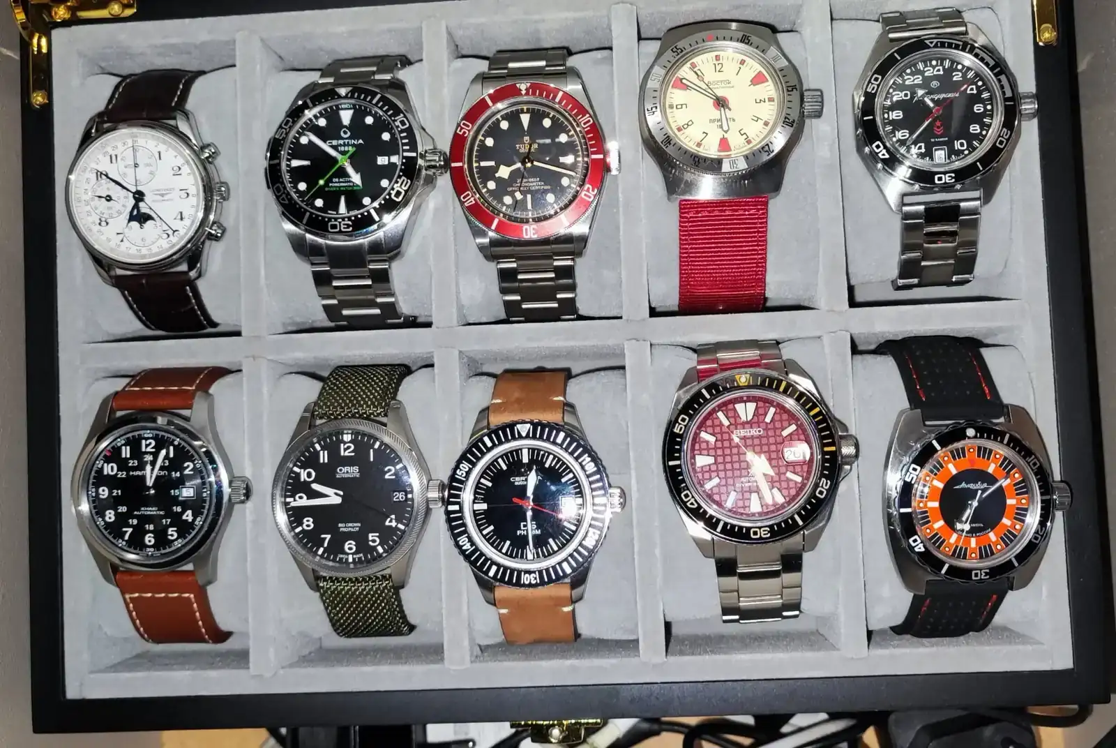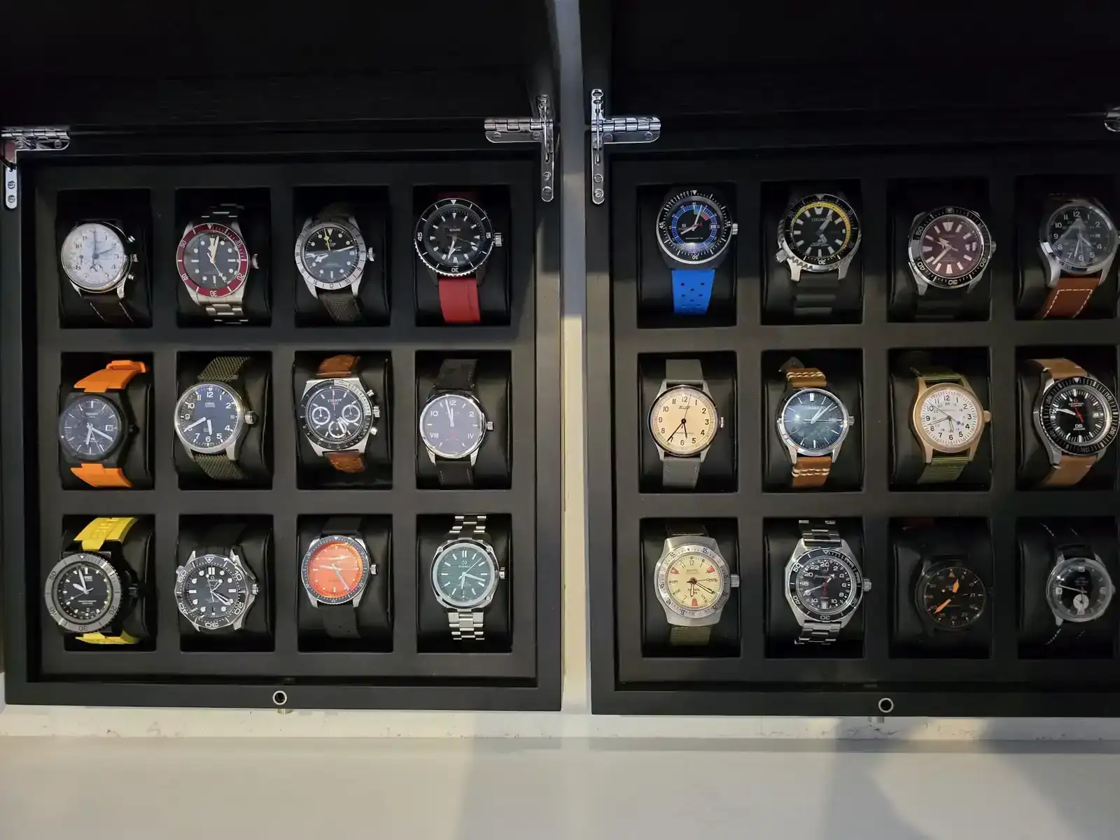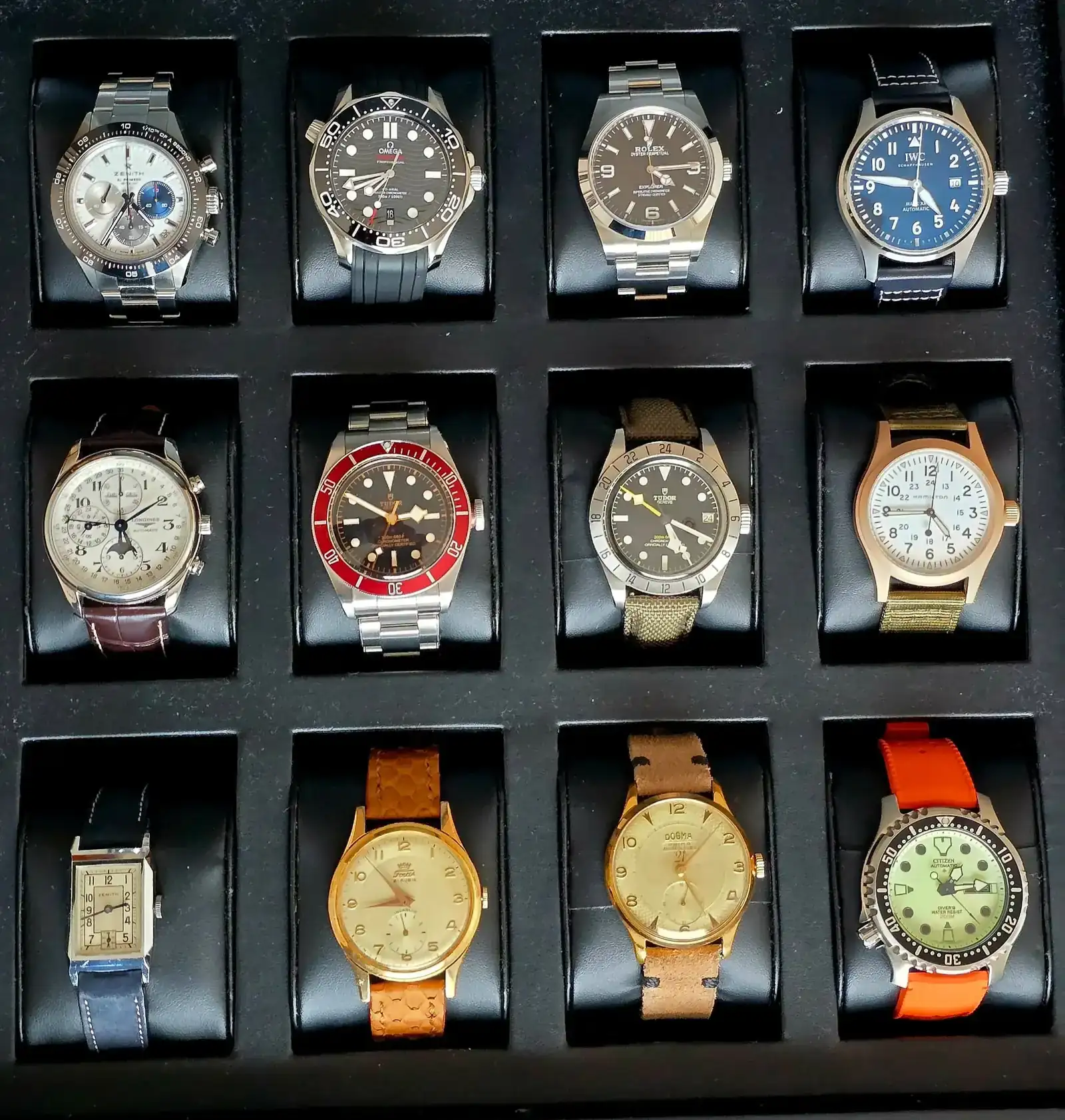 Como empezaba a acumular demasiados relojes, decidí reducir la colección y aumentar la calidad de los relojes y finalmente es así como tengo la caja a día de hoy: