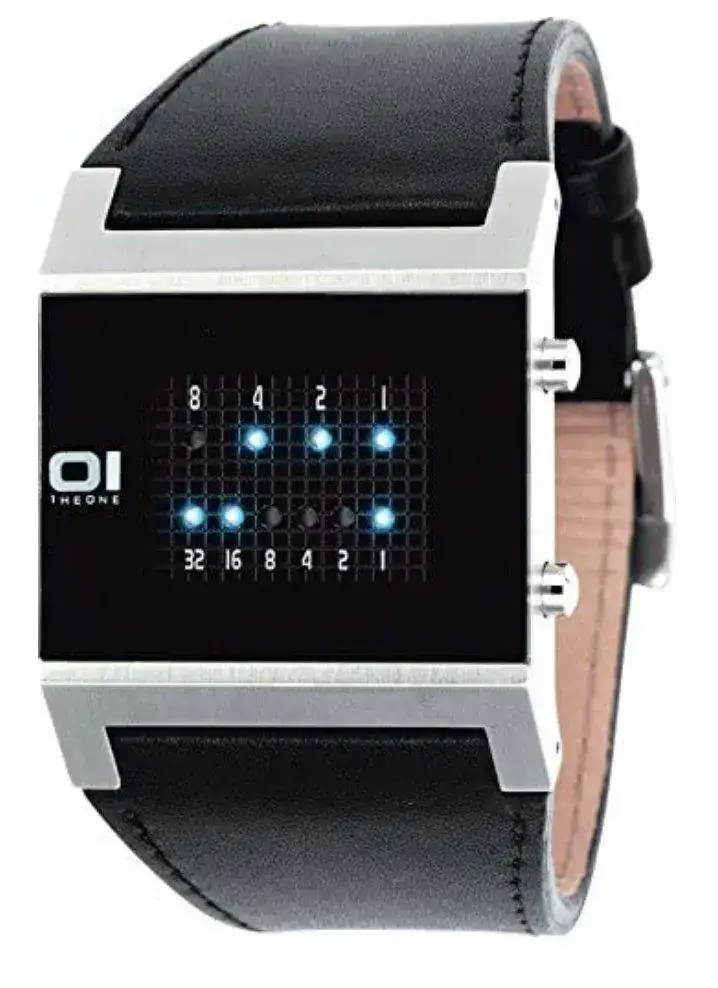 El quinto es un espejo, Binary time de la firma IQ. Al presionar el boton inicia a girar una luz roja y se detiene donde marca la hora. Muy especial.