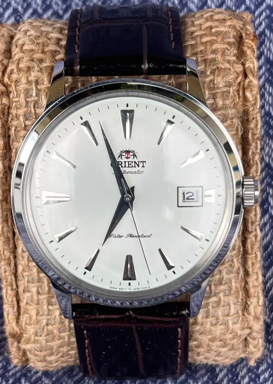 El conocidísimo Orient Bambino,un reloj que compré porque me parece precioso,pero la verdad es que no sale nunca,mi estilo de vestir es más informal y chupa más banquillo que otra cosa.
