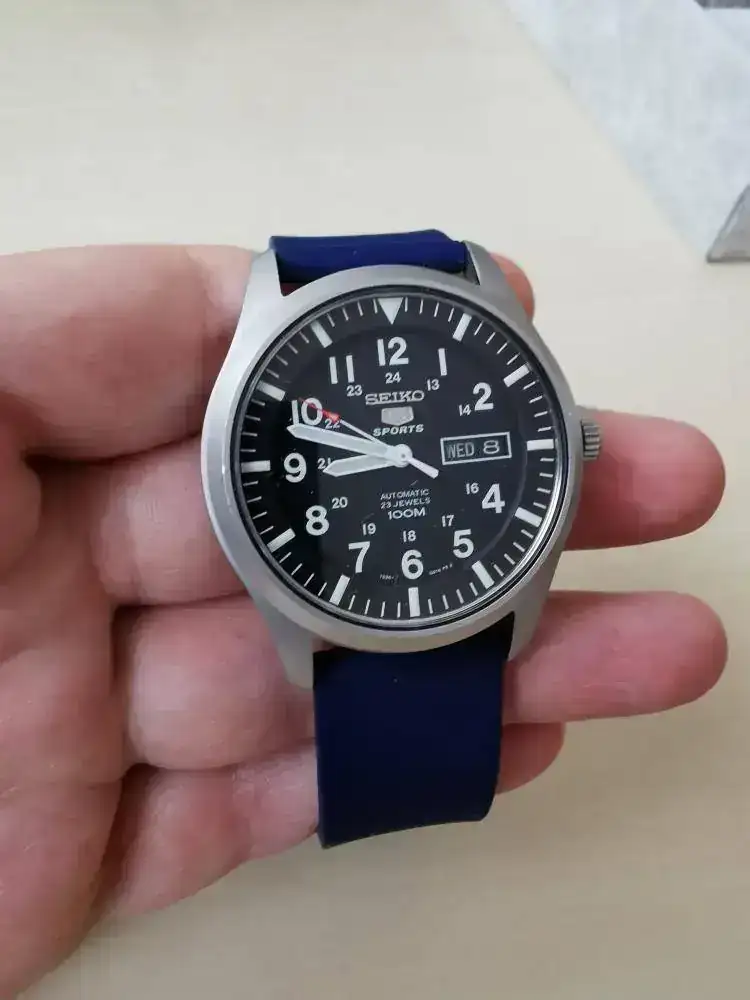 Seiko 5 SNZG15. Mi primer automático, regalo de mi señora. Fantástica calidad-precio, me acompaña muchos días a currar.