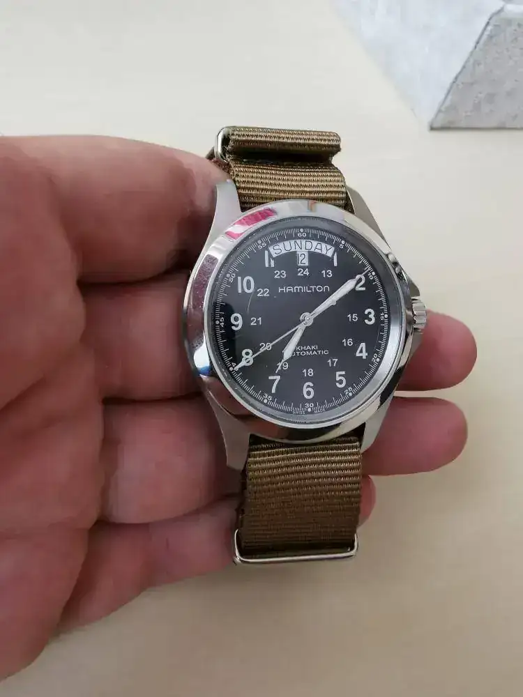 Hamilton Khaki king. He tenido varios khaki field (de 38, 42, e incluso el king en color crema), y al final me quedo con este. Tamaño perfecto y muy polivalente, le va bien cualquier correa.