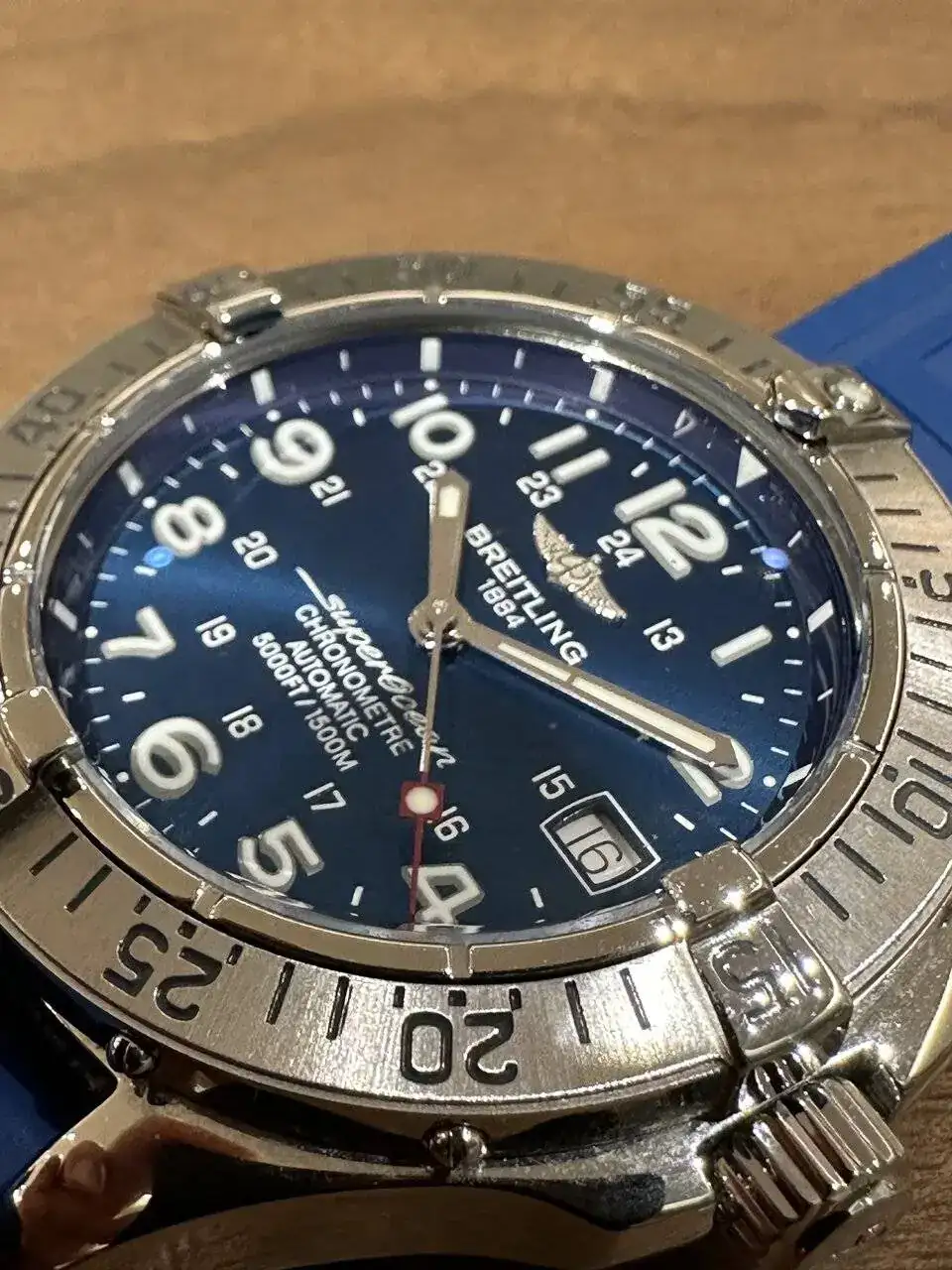 Uno de mis griales y junto al Submariner date y el Speedmaster mi particular "Holy trinity". Comprado también por mis padres por mi 40 cumpleaños, aunque llegó cuando todavía tenía 38. Me enamoré de los old navitimer cuando mi querido padre se compró uno y tuvo por casa el catálogo y a mis impresionables 14 años vi una foto de un Navitimer, probablemente un A23322.