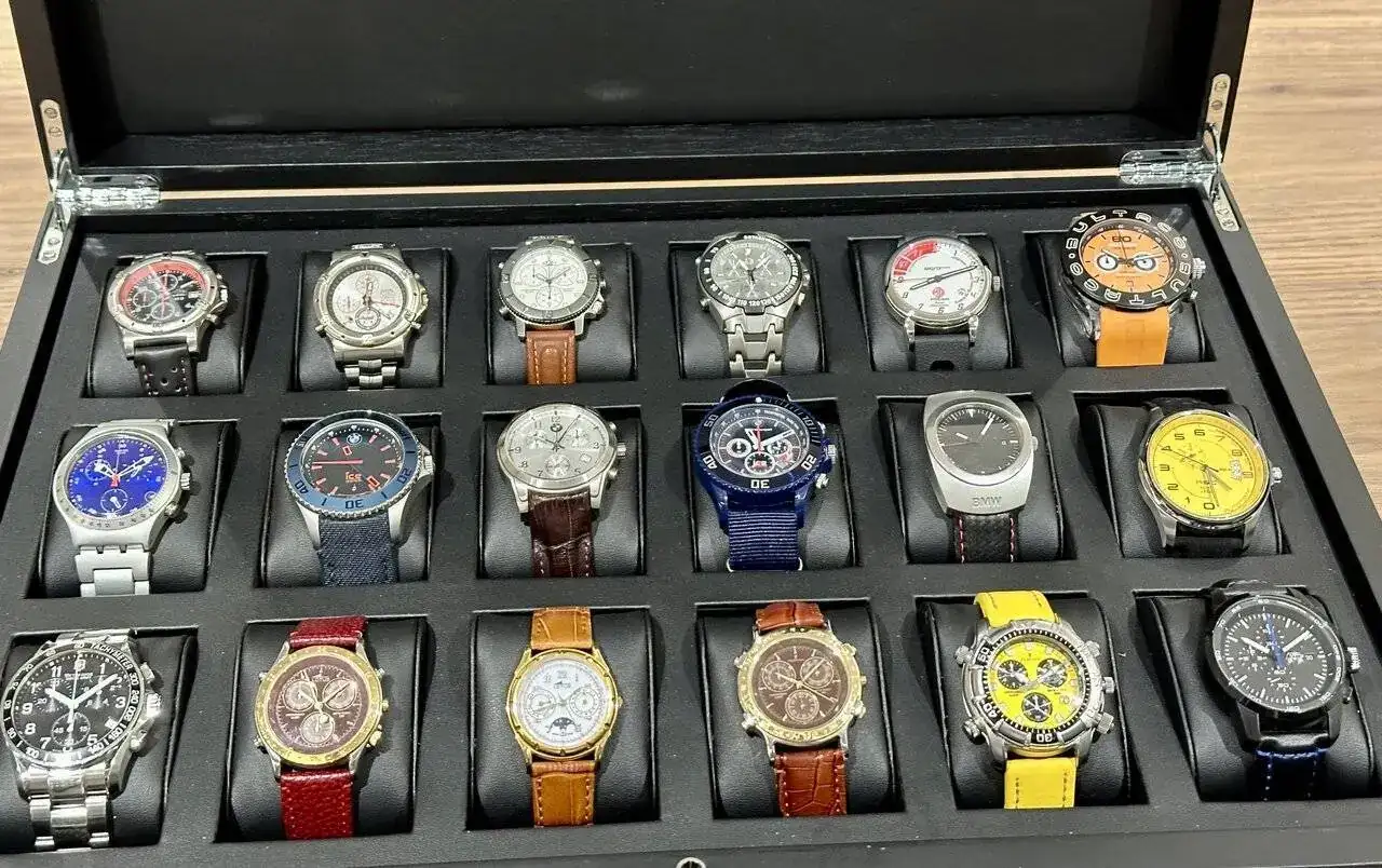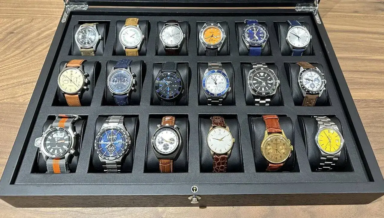 Esta caja contiene los relojes menos importantes económicamente pero quizás los que más historias tienen que contar ya que hablan de mi niñez y juventud cuando el dinero disponible era limitado y todos los relojes vienen regalos de mi familia o comprados por mi con la paga, son los relojes que me metieron el bicho en el cuerpo influenciado por mi padre que también le gustan mucho.