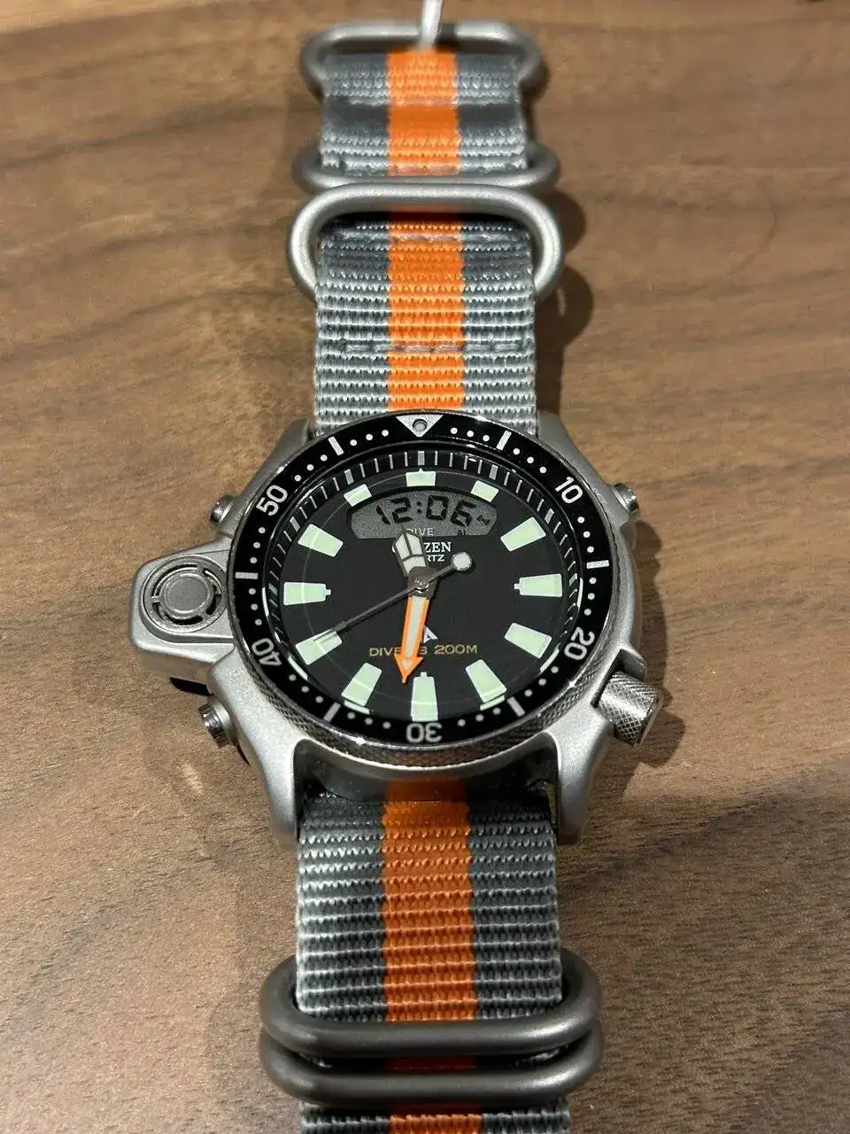 Citizen con tecnólogia de cuarzo brutal, se pone en hora solo, solar, y de titanio, es un candidato a salir ya que el brazalete no me ajusta todo lo bien que me gustaría.