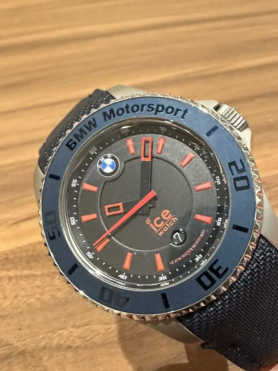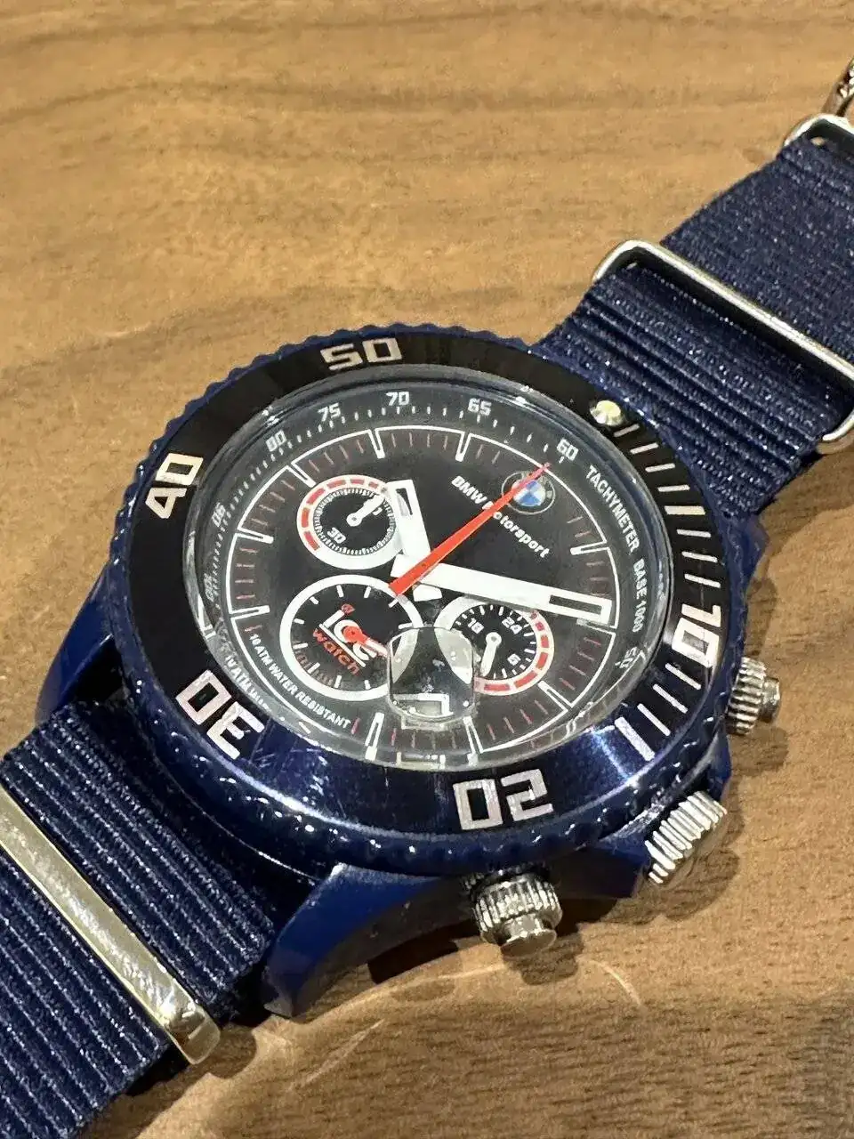 Reloj BMW OEM de 2003 regalado por el concesionario, no es un mal reloj, zafiro, Swiss made… bonito bonito no es…