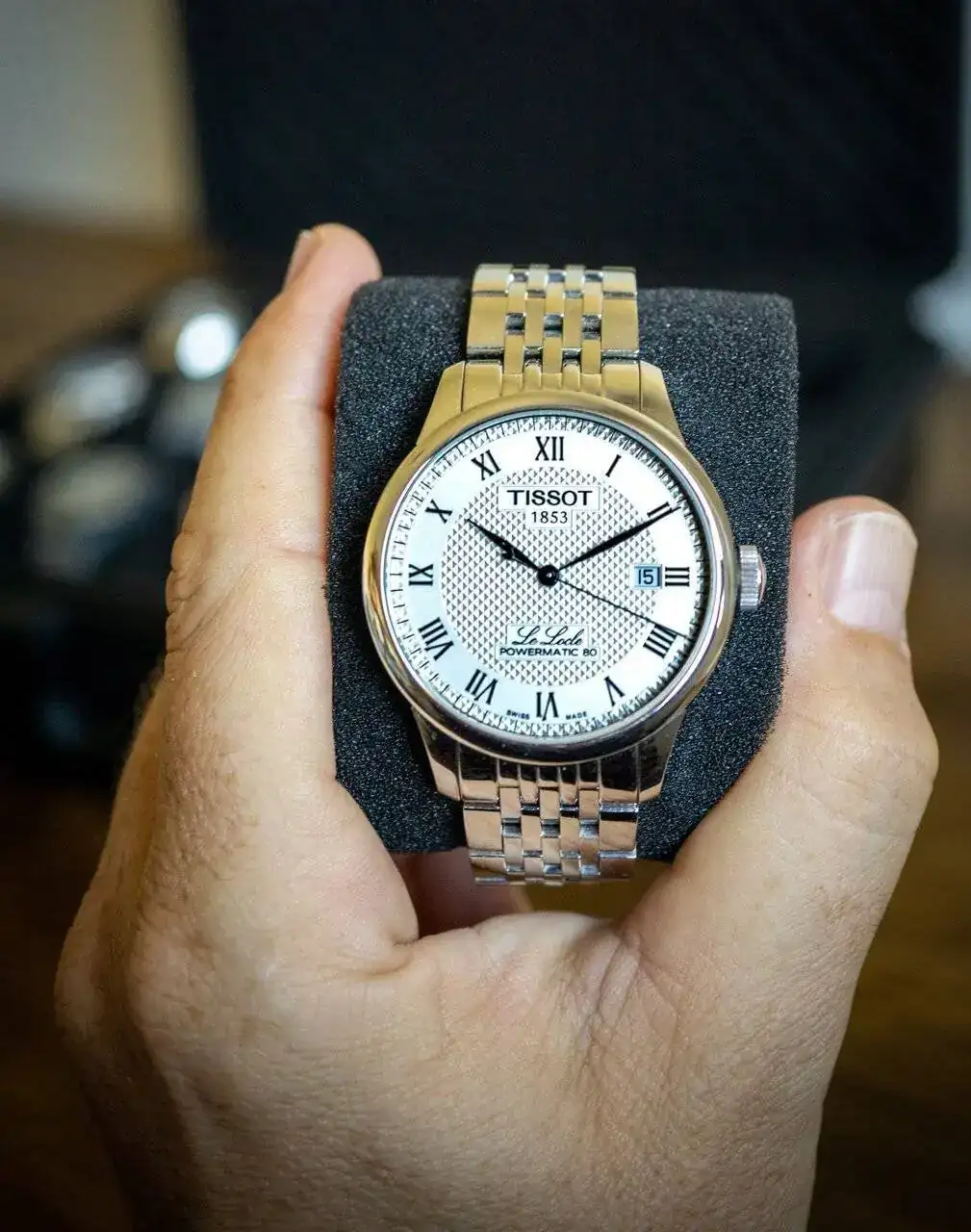 Y en la búsqueda de algo bonito, elegante, de marca conocida, buenos materiales y buen calibre, se cruzó el Le Locle de Tissot con su Powermatic 80. Lo compré y quedó guardado para estrenarlo el día de la boda.