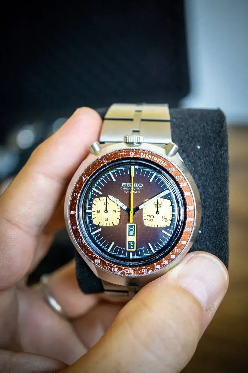 Y un par de meses antes de la boda mi padre me enseñó el primer reloj que se compró, en verano del 1975 con su primera e íntegra nómina. El Seiko Bullhead. Me lo regaló para la boda y para que se quedara en mi colección. Lo llevé a chapa y pintura, cambio de cristal y mantenimiento interno. Decidí dejar el bisel como estaba.