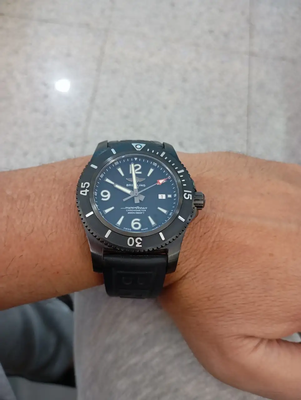 Aqui el contundente Breitling Superocean Black Steel de 46mm. Todo un 2000 metros que lo hacen un reloj tanque para usar de forma discreta (el negro ayuda).